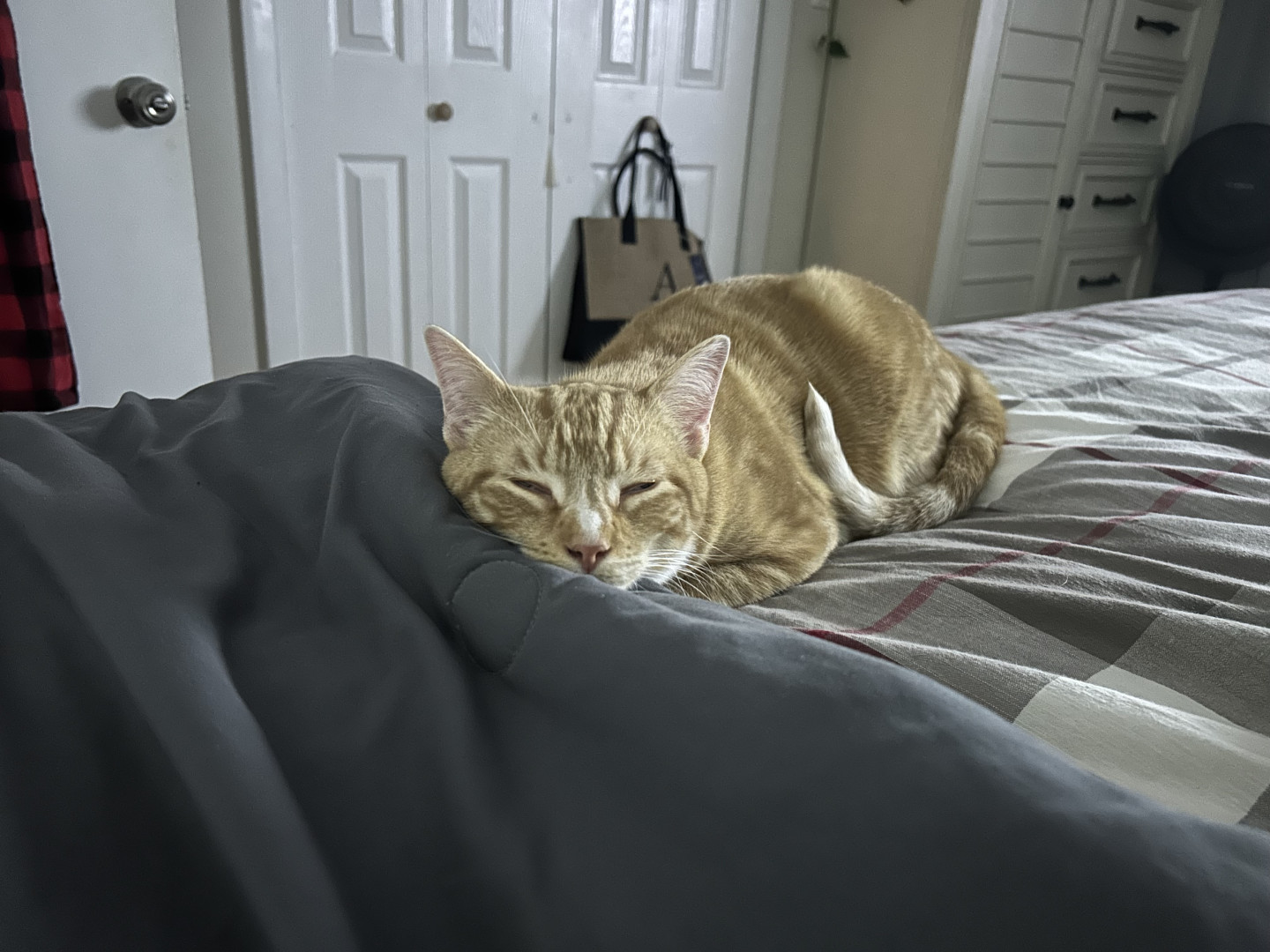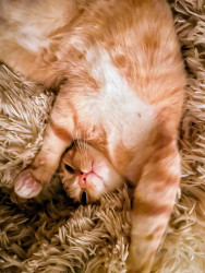 My cat’s unique quality is his curious yet timid nature. He’s playful, observant, and incredibly sweet, with a funny streak that comes out when he’s comfortable.
