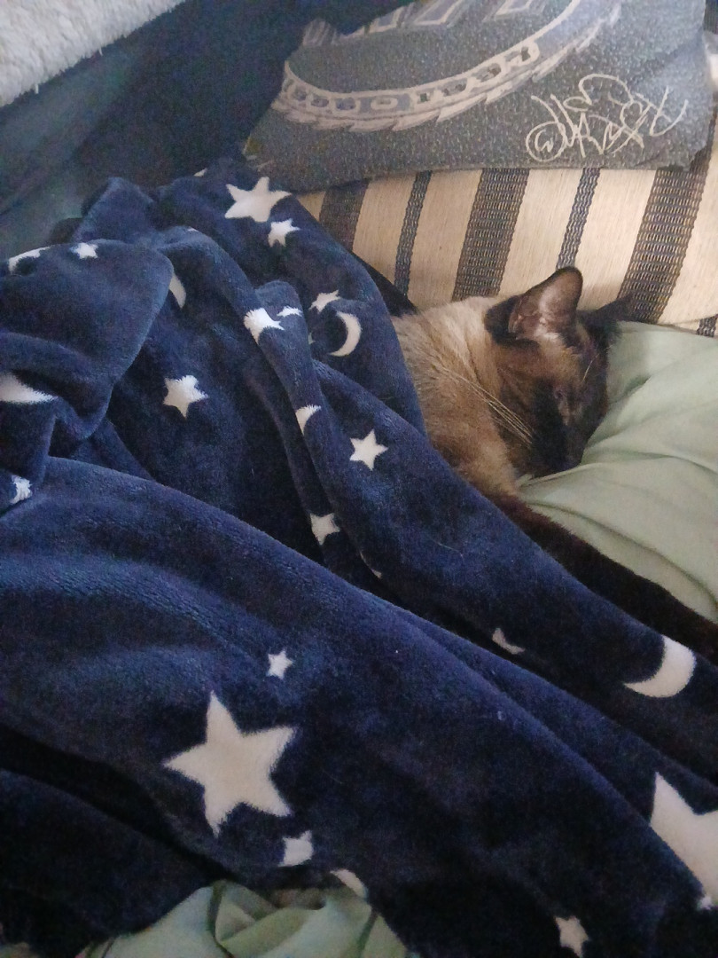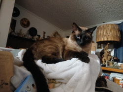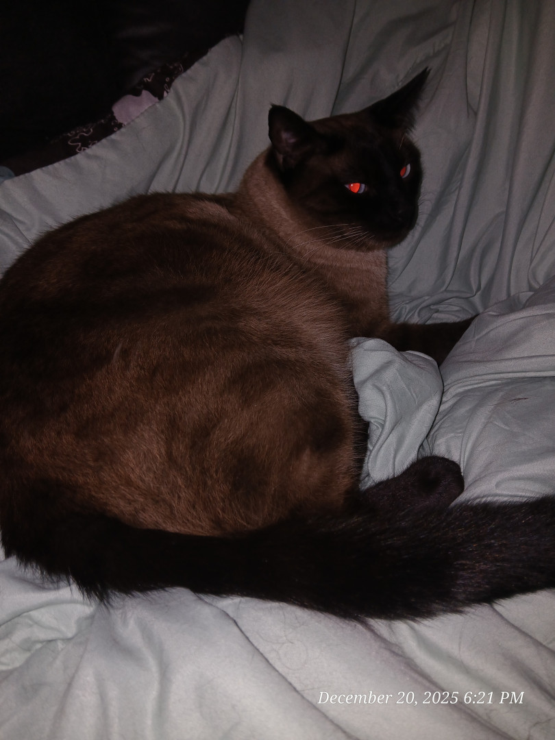 Mr Minks is a seal point Siamese who has asthma at the age of two, but is the most loving and playful cat . And is obsessed with his Fish.