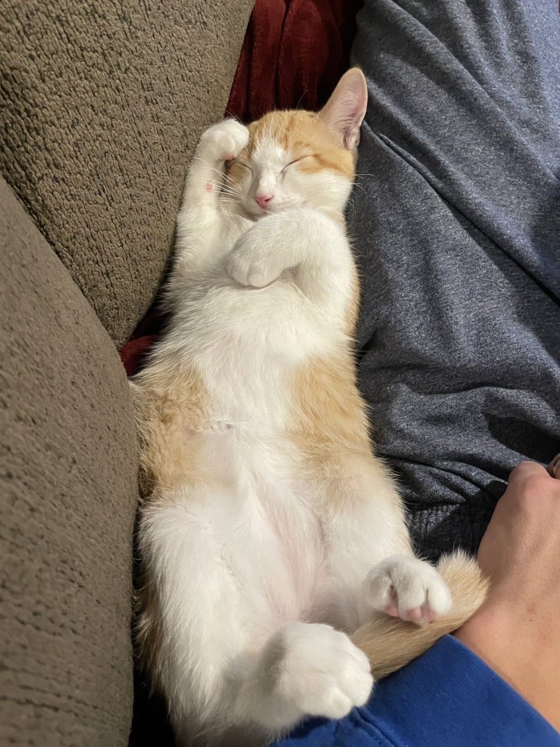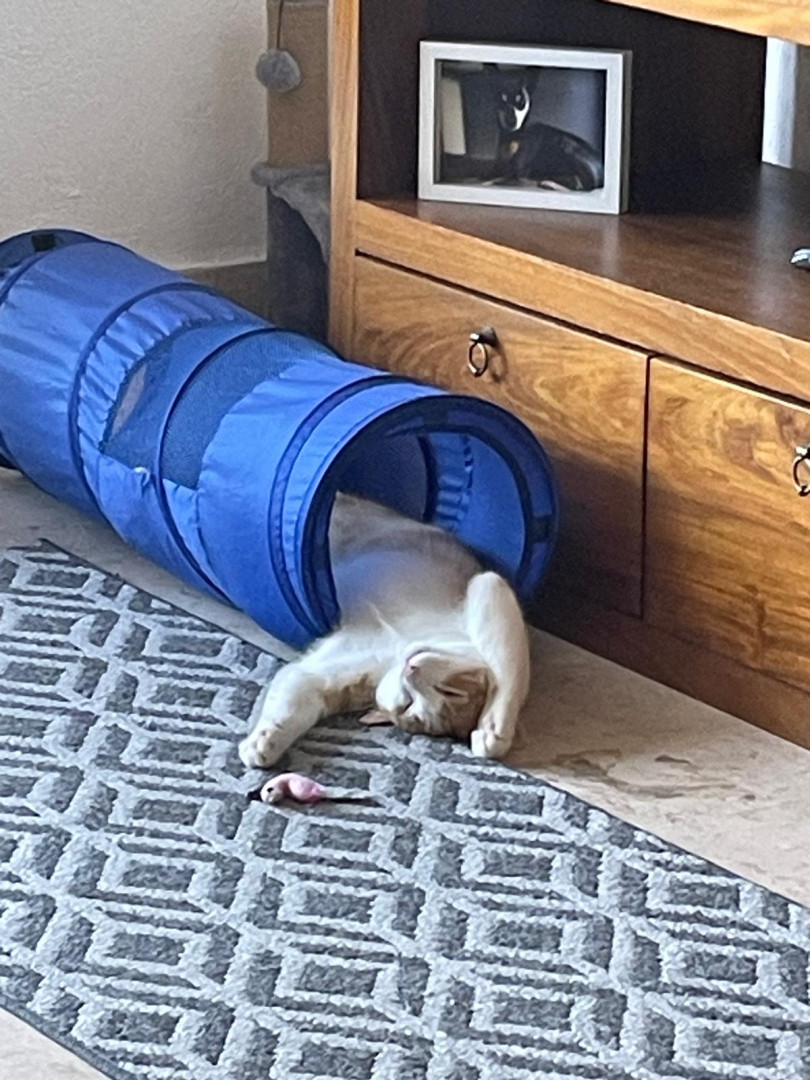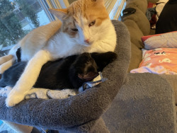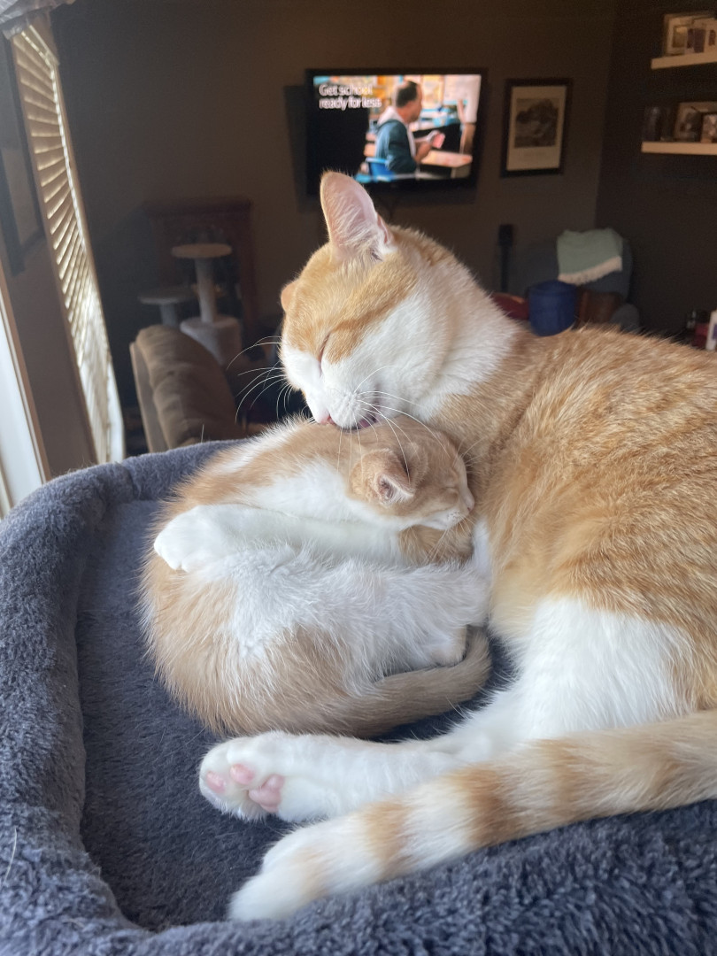 After 18 foster kittens, Lolz was our first and only ‘foster fail’…how could we say no to that face?! He is the most lovable and amazing little man who helps us by welcoming other fosters into our home, taking on the role of momma by bathing, playing, snuggling and nurturing them. He is one of a kind ❤️