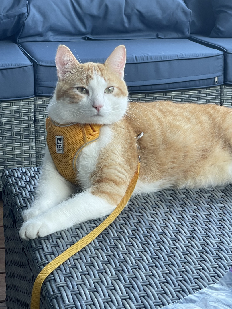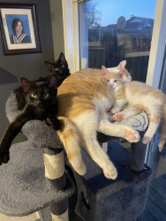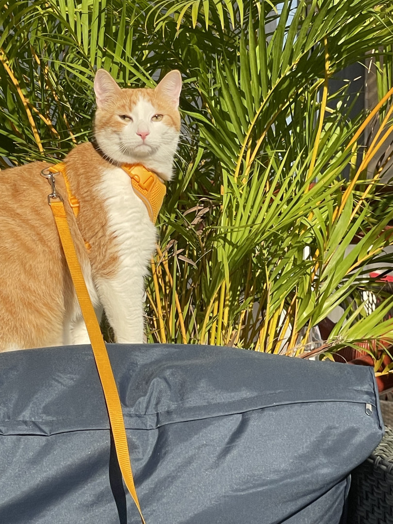 Lolz is a major goofball, always rolling around, purring and just loving his life! He loves people, loves to travel with us and explore what’s going on around him at ALL times….and if there is a stick available, he lovingly gathers them in the house for me 🤷♀️