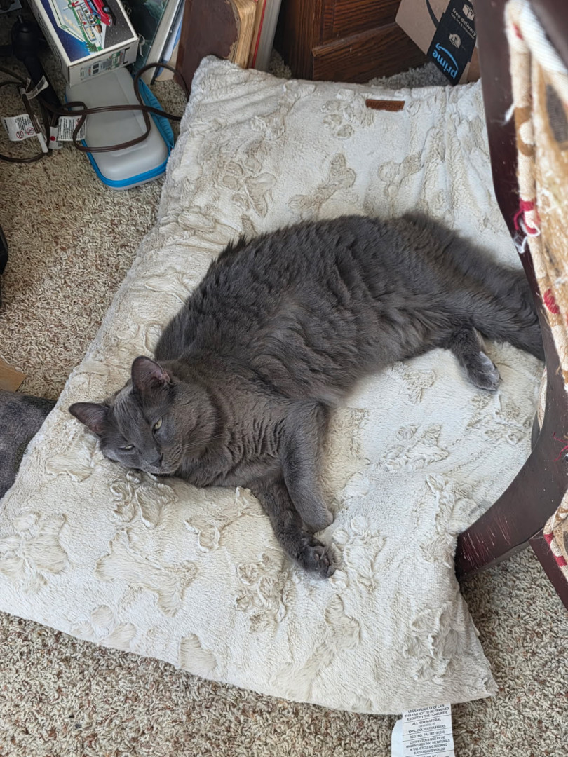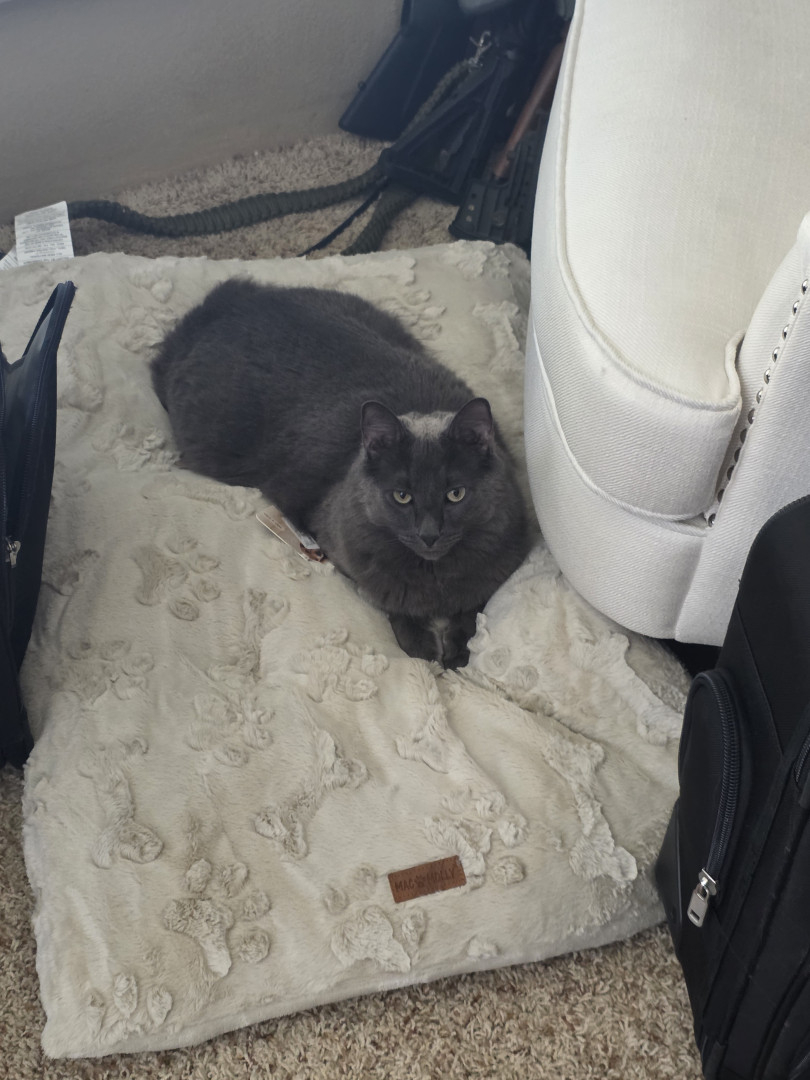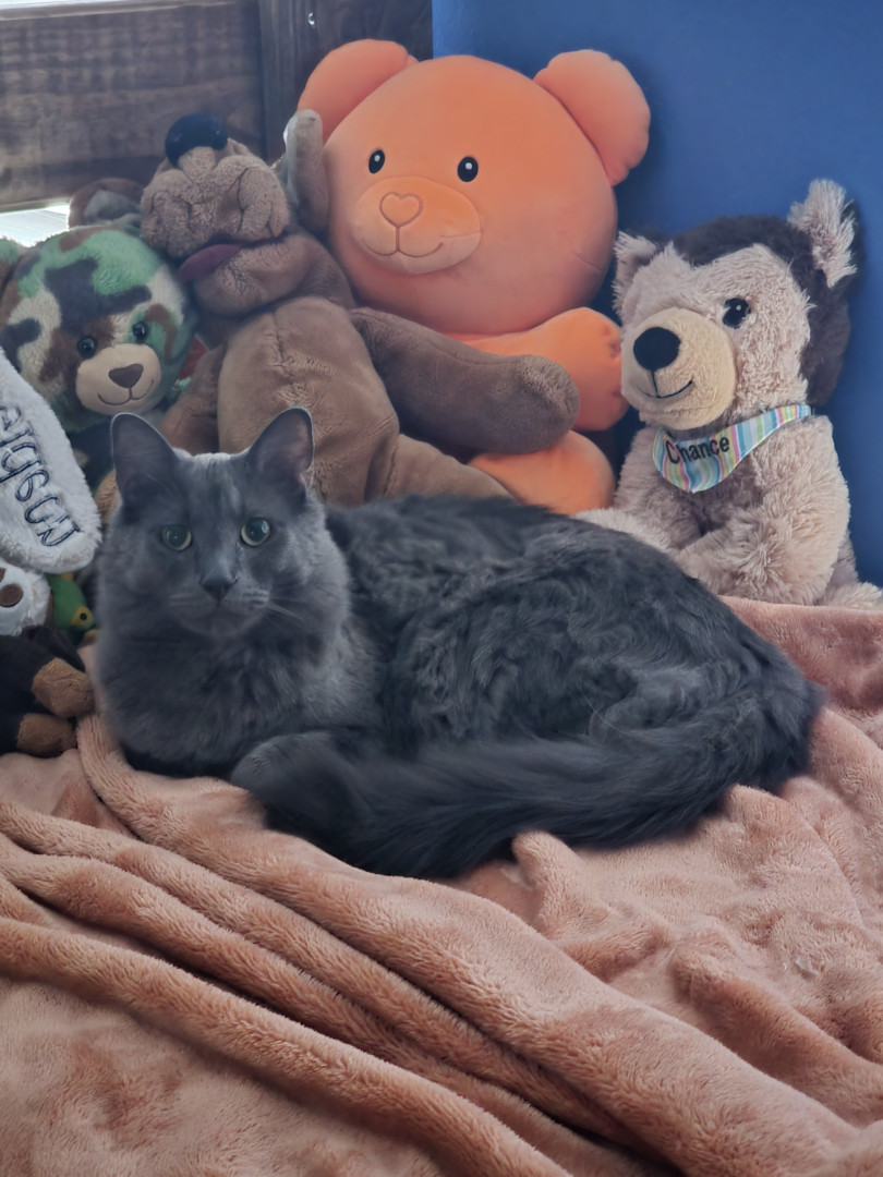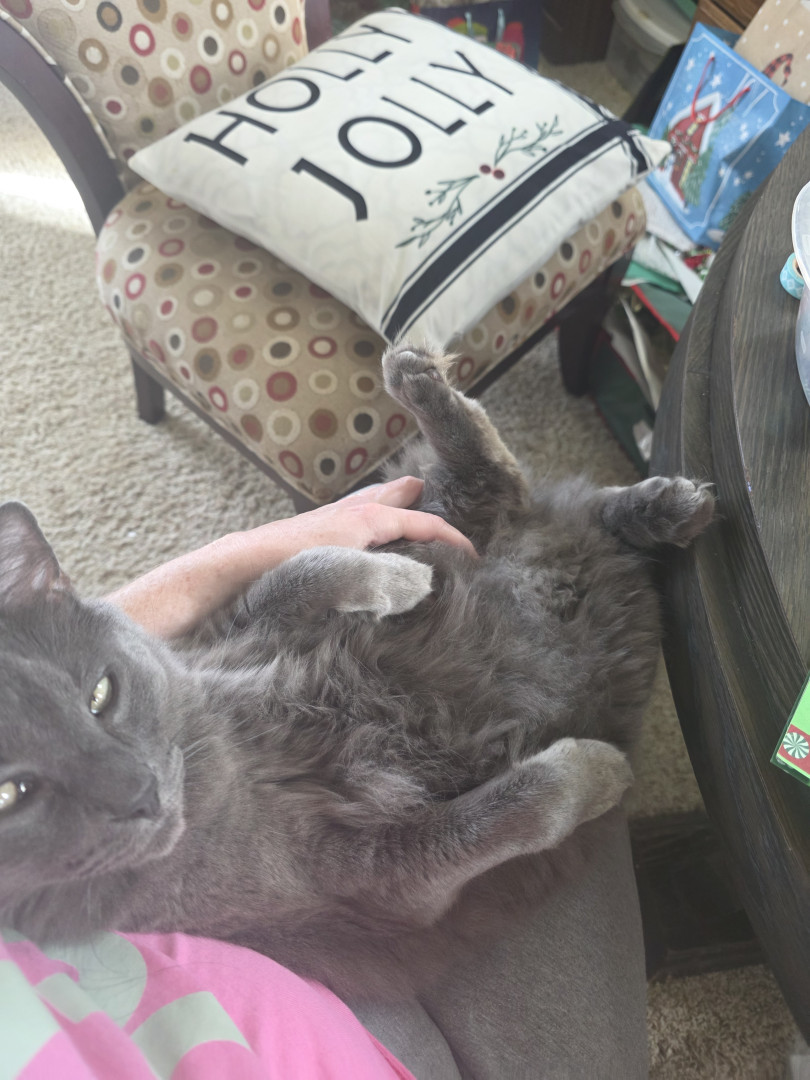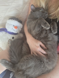 MC is a loveable floofy butt! He comes to me when I cry! He's an emotional support cat who loves cuddles.