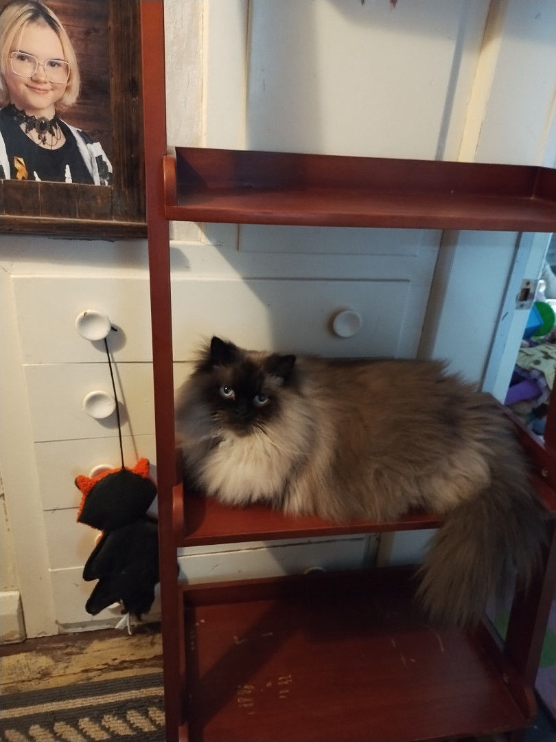 We rescued him from being put to a barn and boy are we so glad we did. He is a very loving and gentle teddy bear that everyone loves. He loves to be cuddled and he loves cuddling with you. We are so very lucky to be the family that got to saves this beautiful soul. He is our fur-ever fur baby and we love him so much.