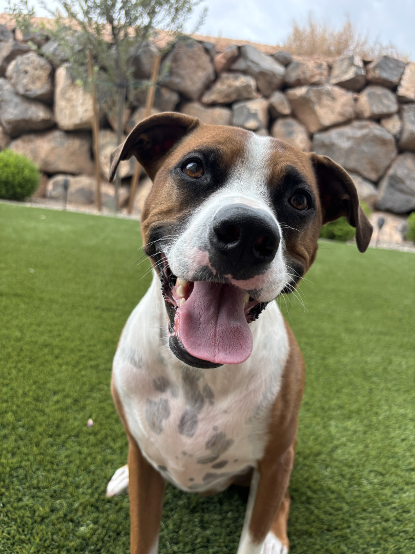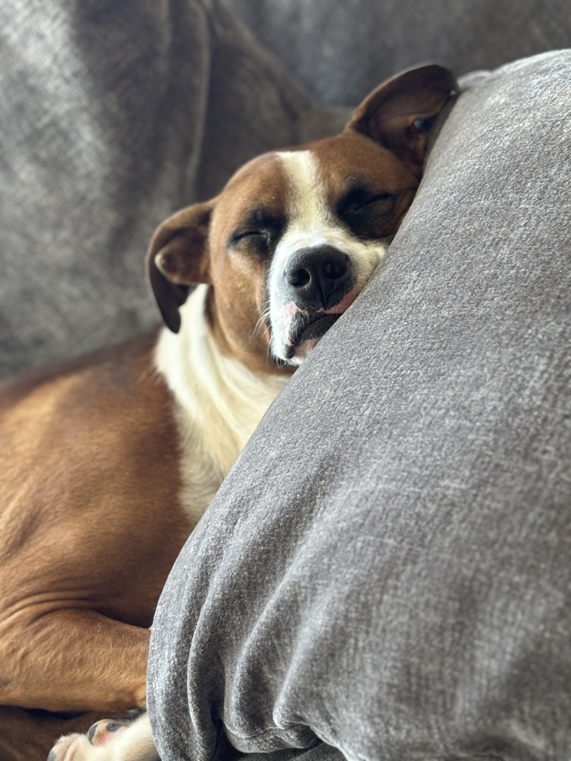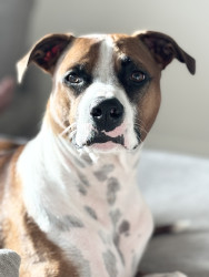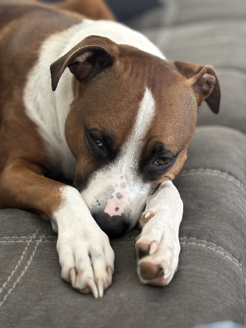 Mr Bojangles is the sweetest, most loving, laziest pittie mix you will ever meet. He might look tough but he is scared of everything.