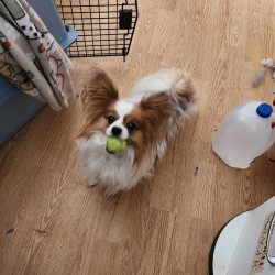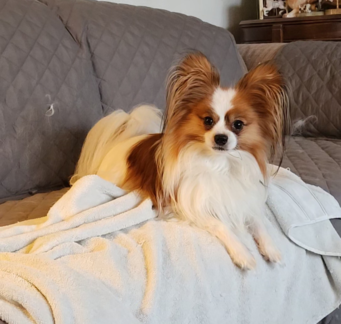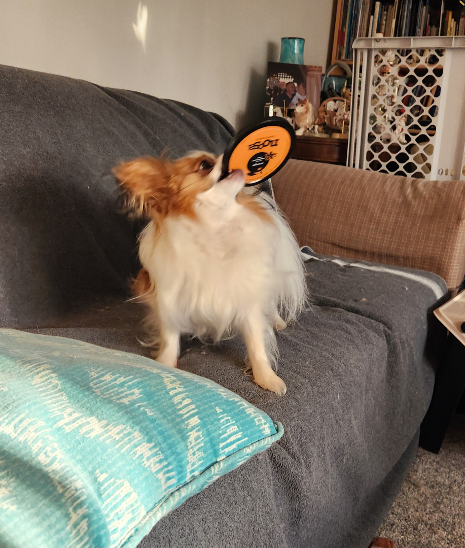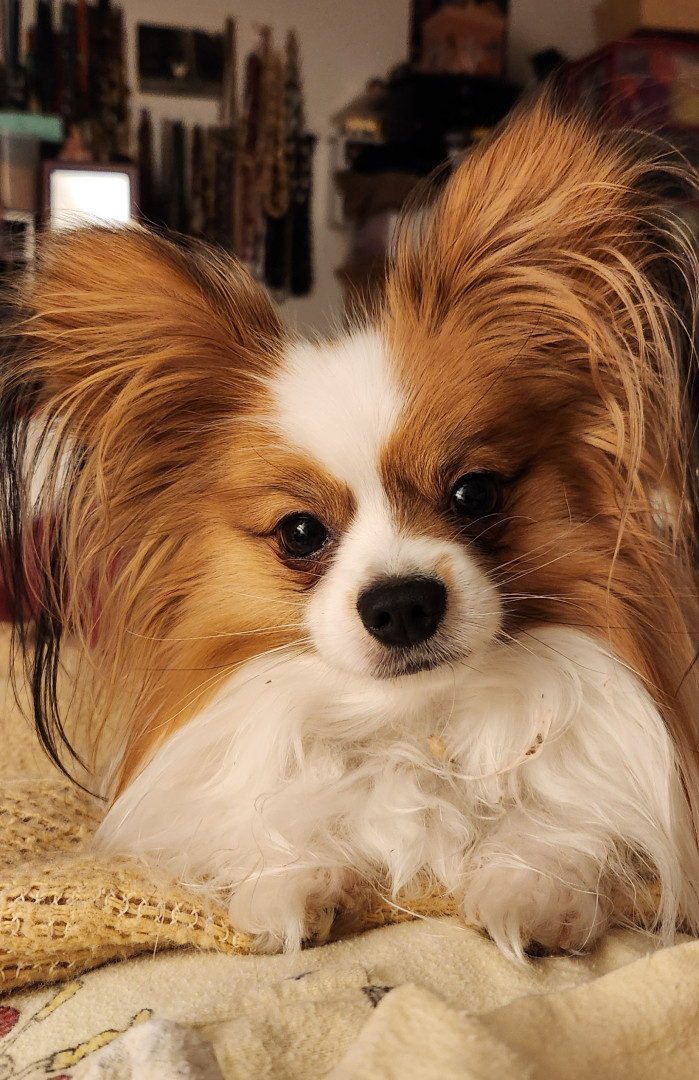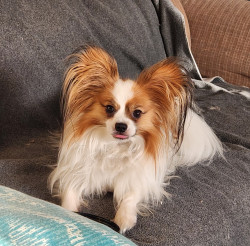 A cheeky little guy that has his own language of squeaks and grumbles. He steals things from around the house, especially loves jewelry.