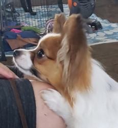 He has his own language of squeaks and grumbles which endear him to your heart. I've only seen this language in one other dog - his older brother.