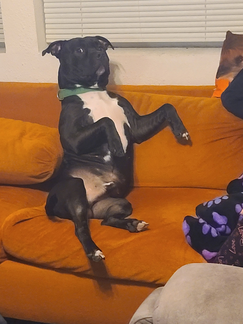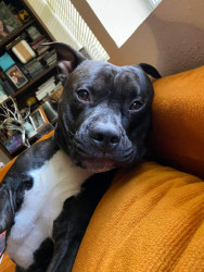 5 year old American Staffordshire Terrier. 75lbs of twisted steel and sex appeal. He is all muscle and love who thinks he is a lap dog