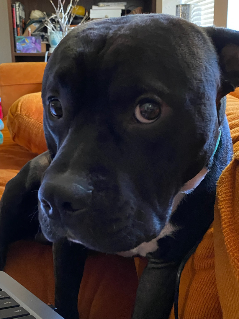 Being their to lick away our tears or cuddle us through our heartbreak of losing his sister Zoe on 12-29-25 even though he is sad as well. I don't think I could out of bed if he wasn't here to love and be loved by my girlfriend and myself. He has been our rock. His weapon like tail which is always wagging.