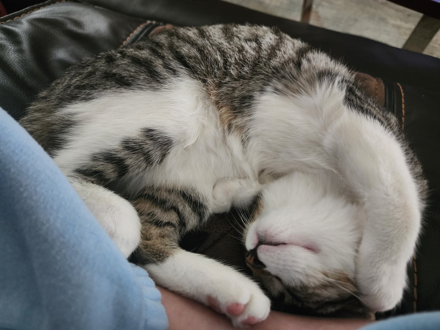 I have never seen a cat like her. She dances and sleeps with all her legs out. She is just so perfect.