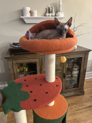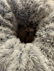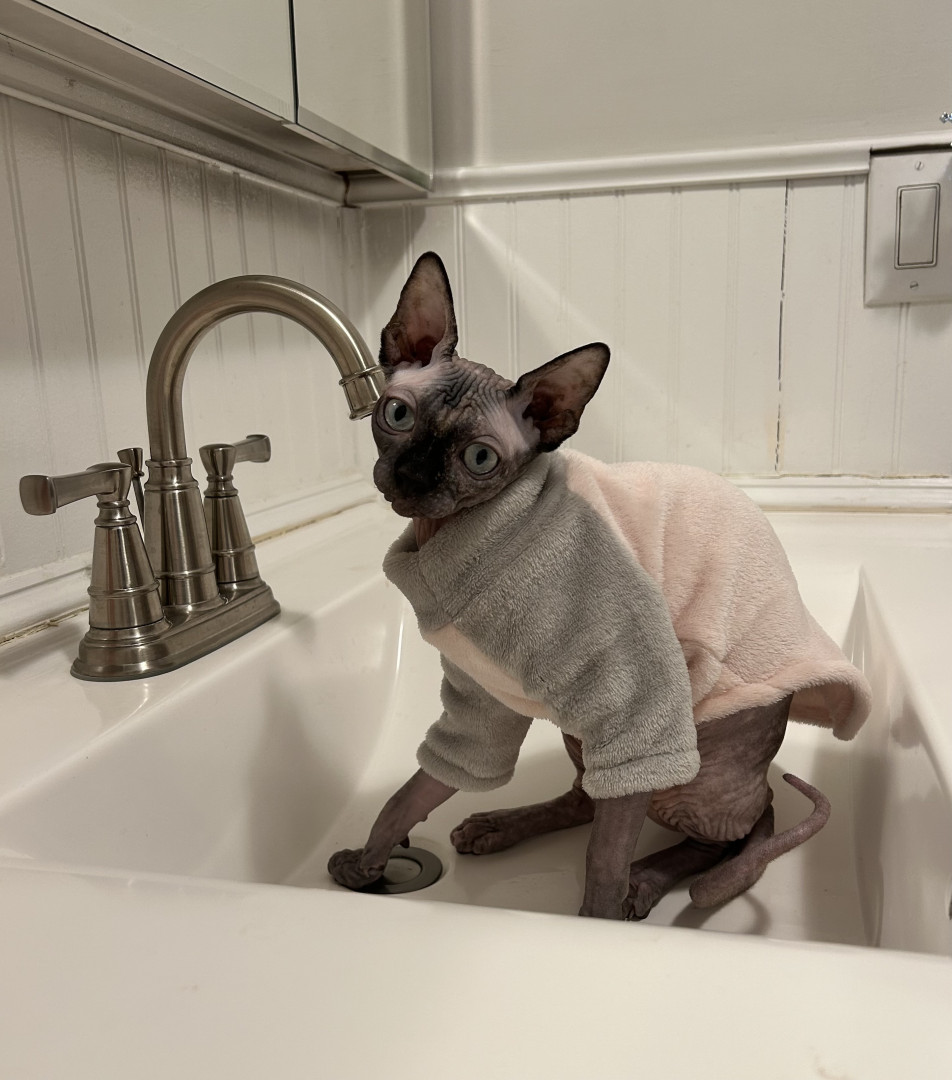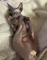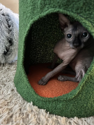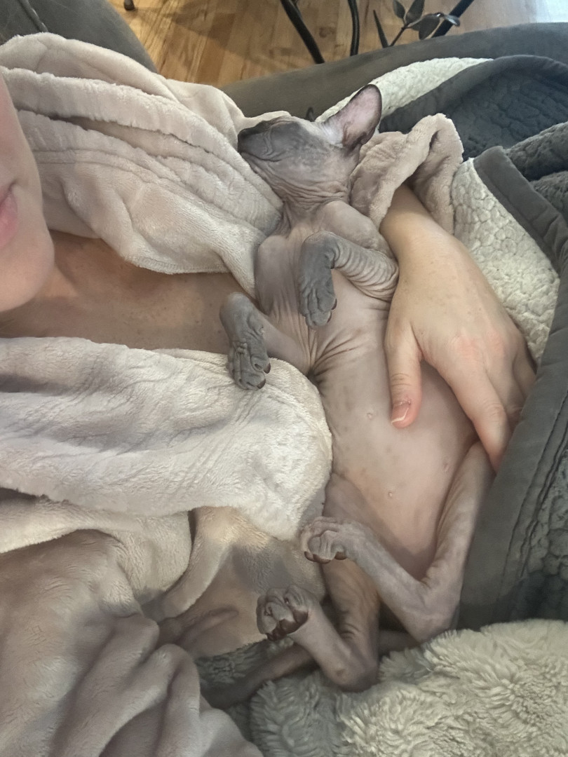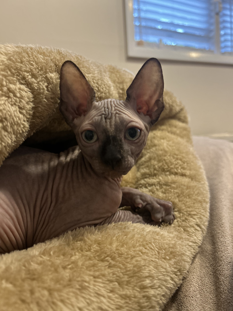Olive brings a uniqueness all her own to the group, this hairless cutie may lack fur but makes up for it with her abundance of energy, unconditional love and giant, expressive personality. She teaches everyone that she meets, beauty goes beyond societal norms and comes in all shapes, sizes and appearances. Beauty is about uniqueness, individuality and confidence! It is time for this little sphynx to take the crown and the cover! The world is ready for a Sphynx Cover Cutie!!!