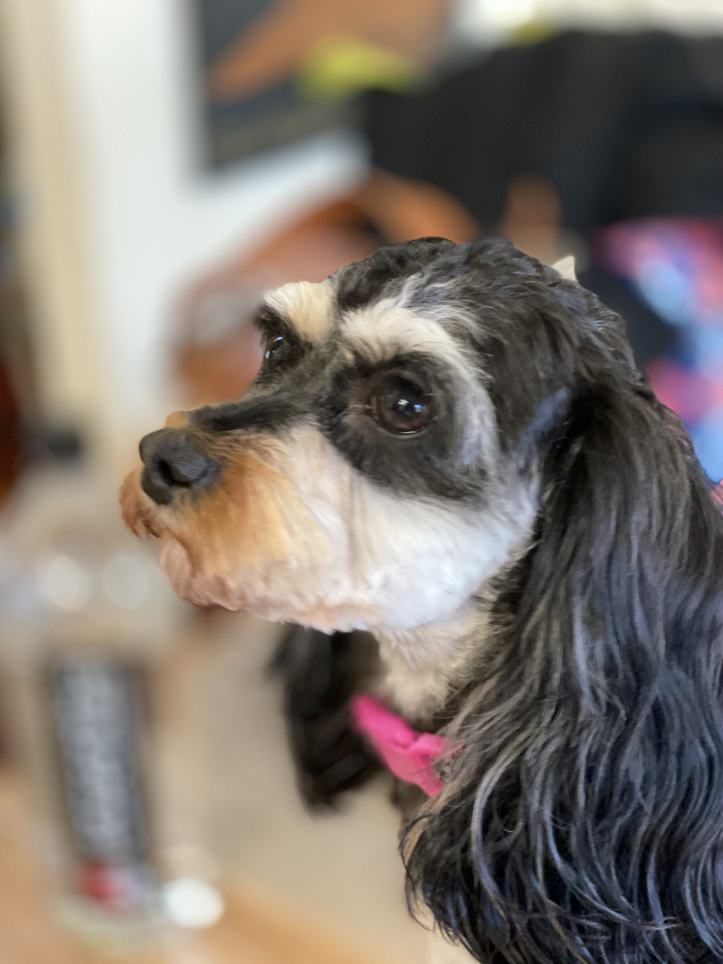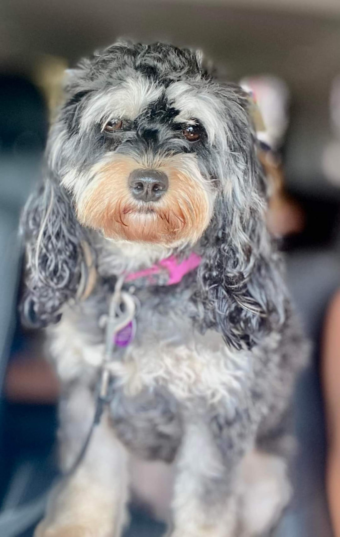 She is a cavalier poodle has been sweet from day one just a little doll love to be with you and everyone is her friend