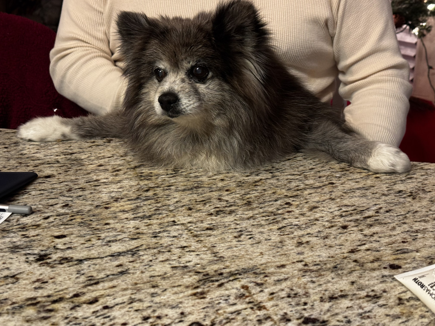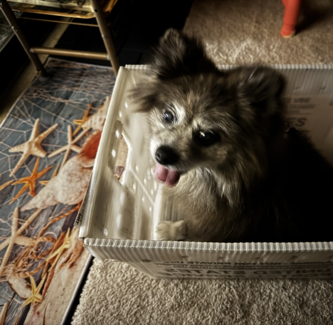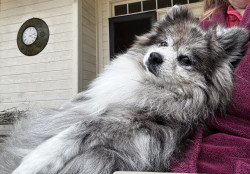 She understands human words to the degree, spelling does not work anymore..she has a unique ability to bark just at the right time when she feels she disagrees with what you say even if it is not directed at her…and she likes to sit like a child in your lap to be rocked or whatever (watch tv, watch birds, listen in on others talking)