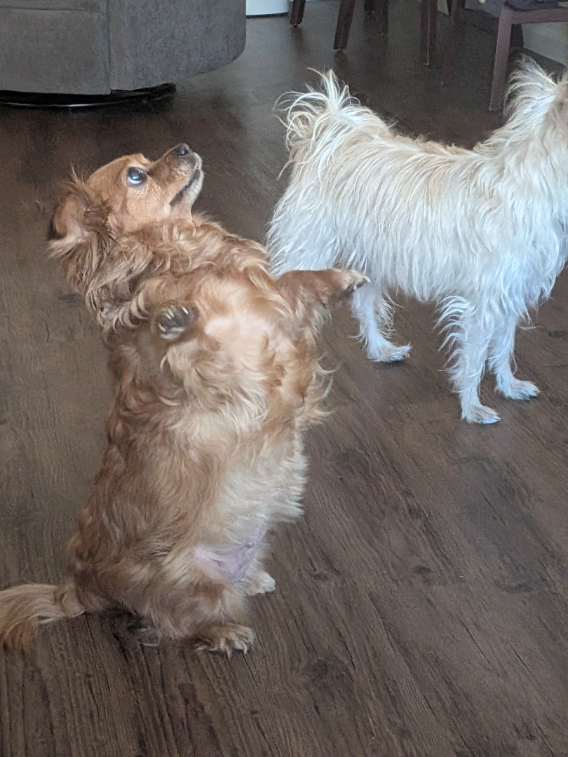 Receive Text UpdatesShe loves food and her dehydrated chicken treats