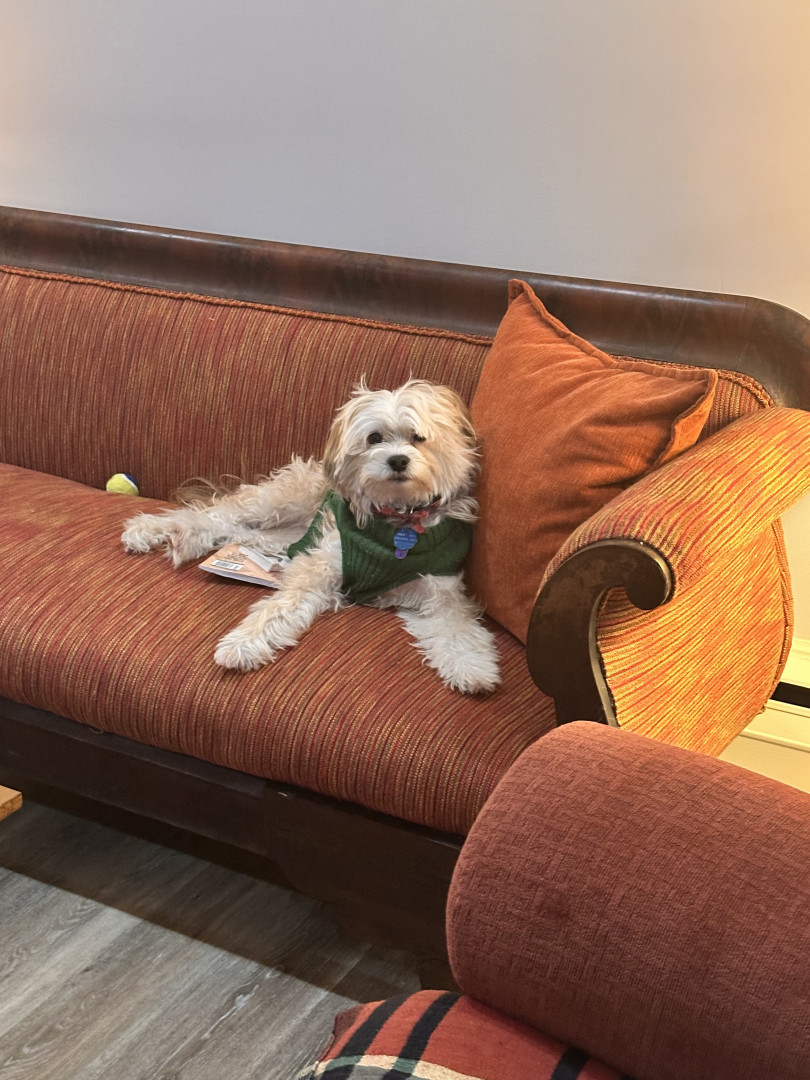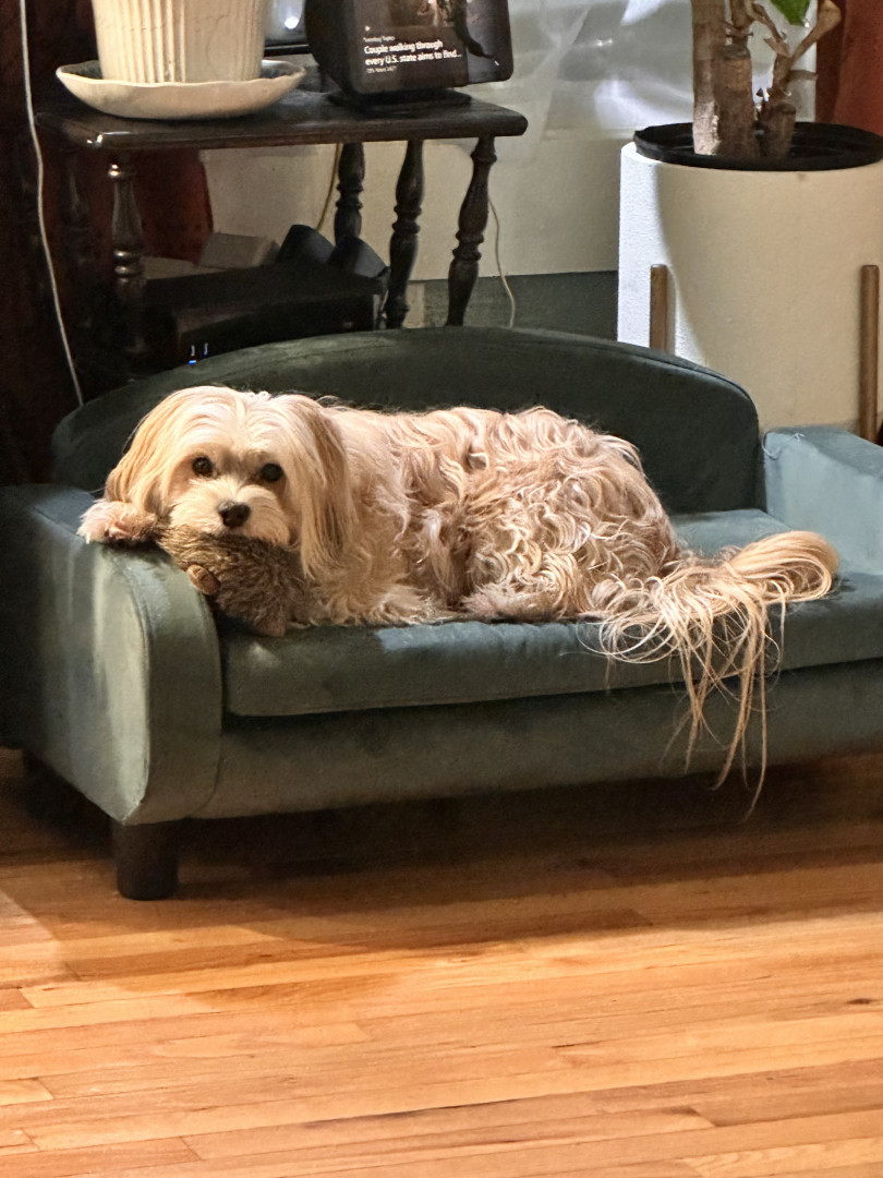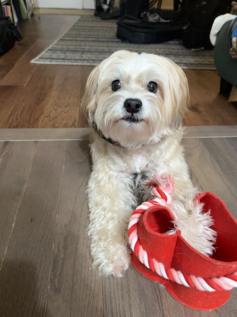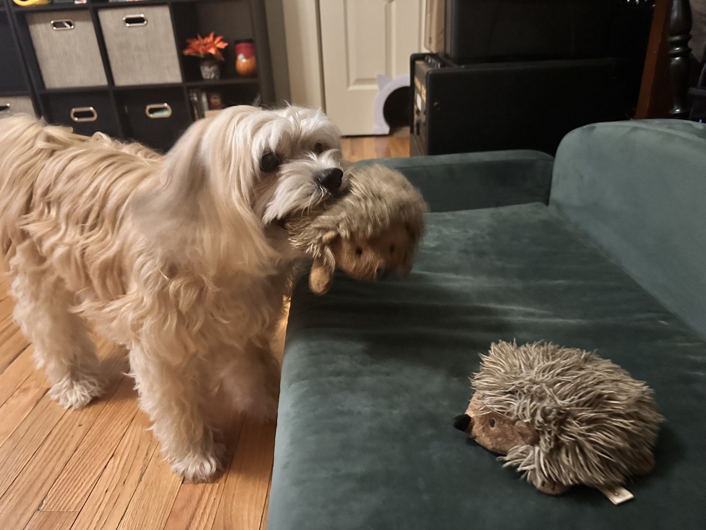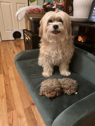 Learn MoreMungo's favorite toy is his hedgehog. He always has a backup just in case anything happens! Recently, we brought out the backup because the original was lost(under the bed), so now after finding the original, we have two that are always around the house- and always together, both nearby to Mungo. His favorite treat is his dentastix, which he will do multiple spins for!