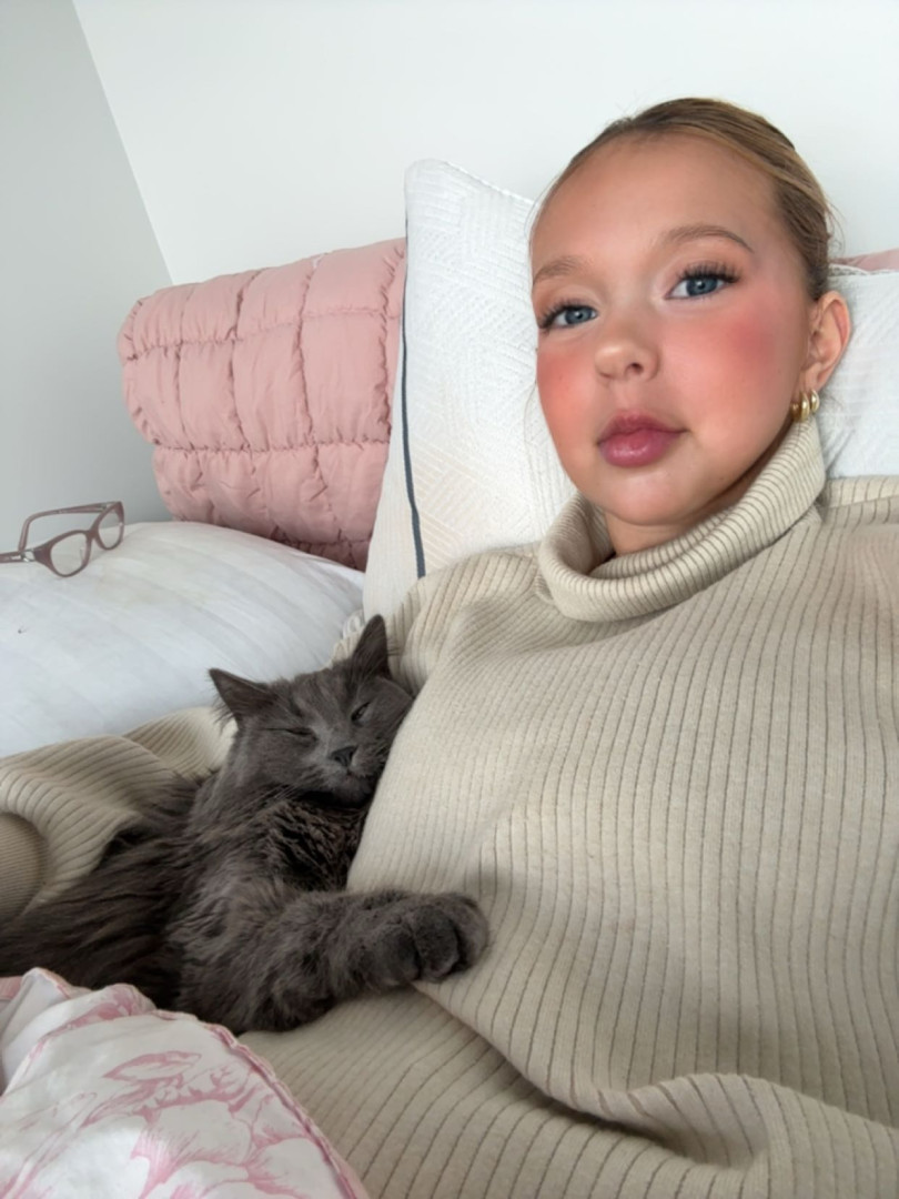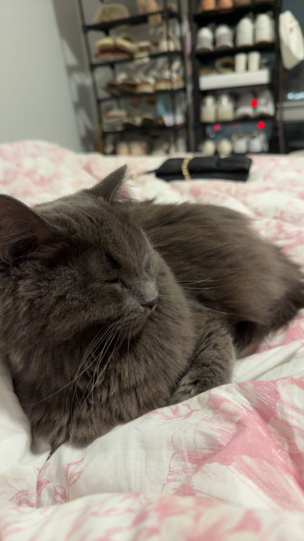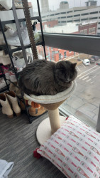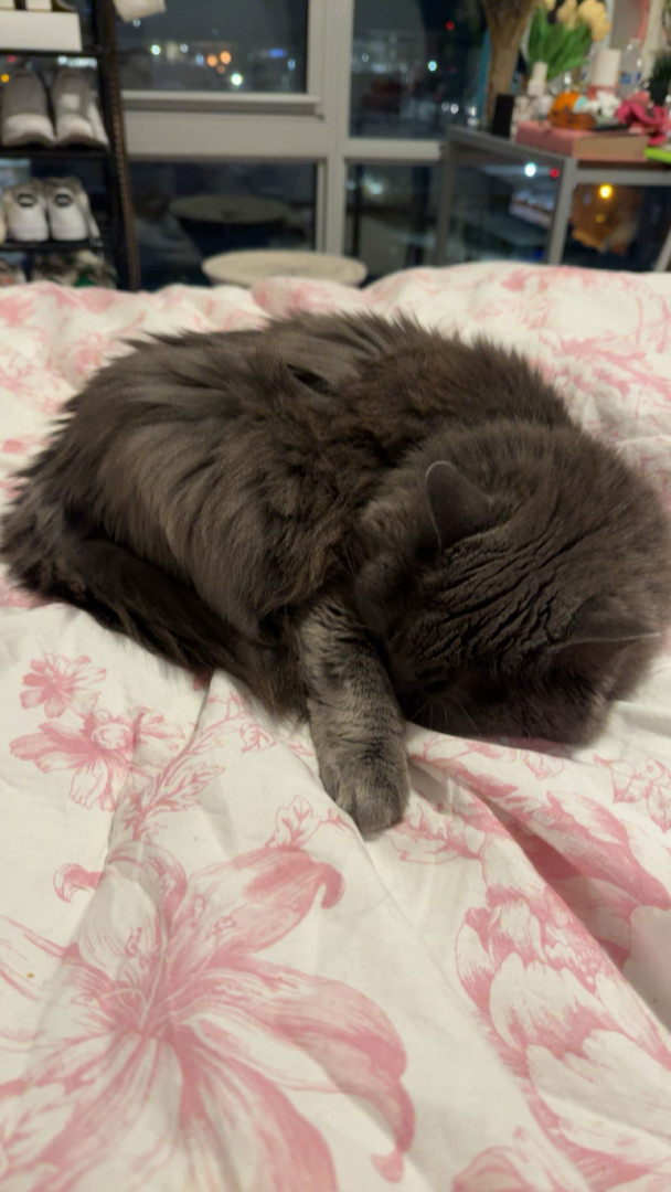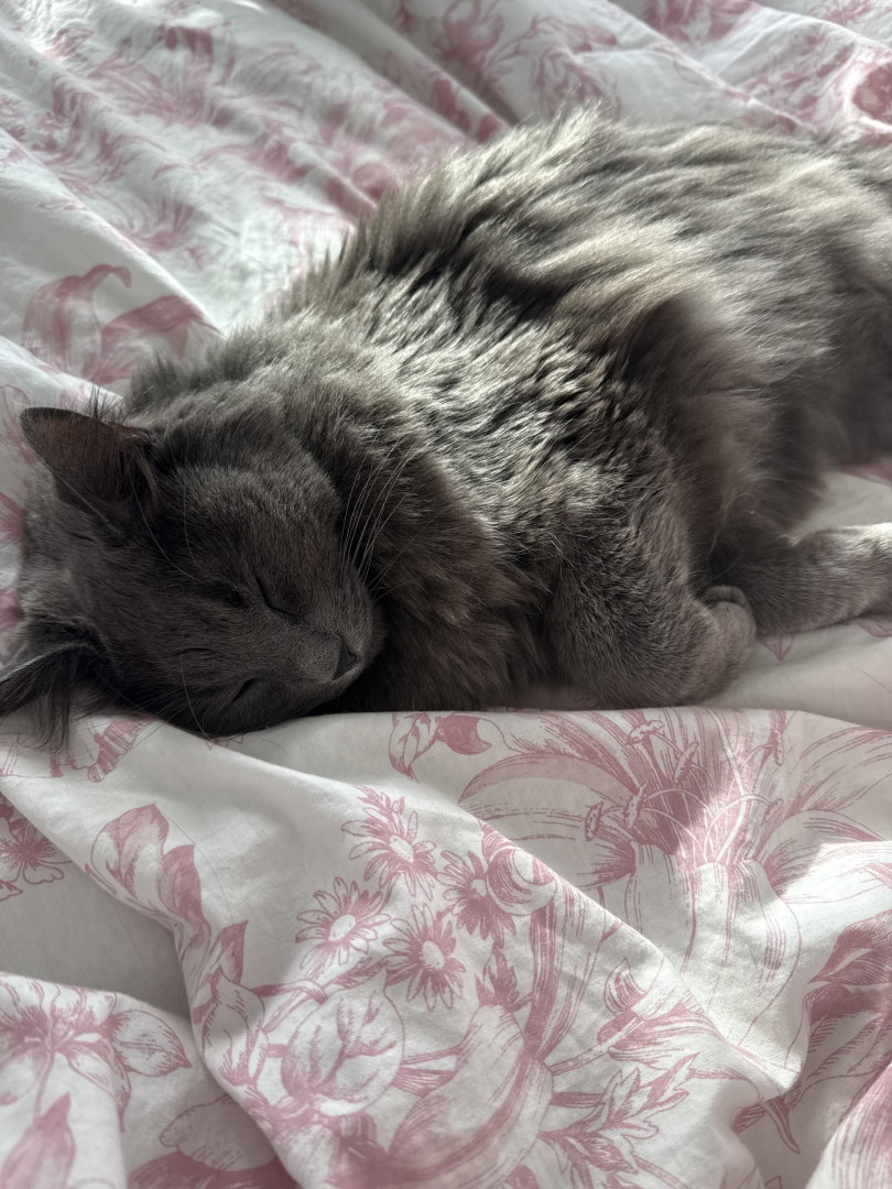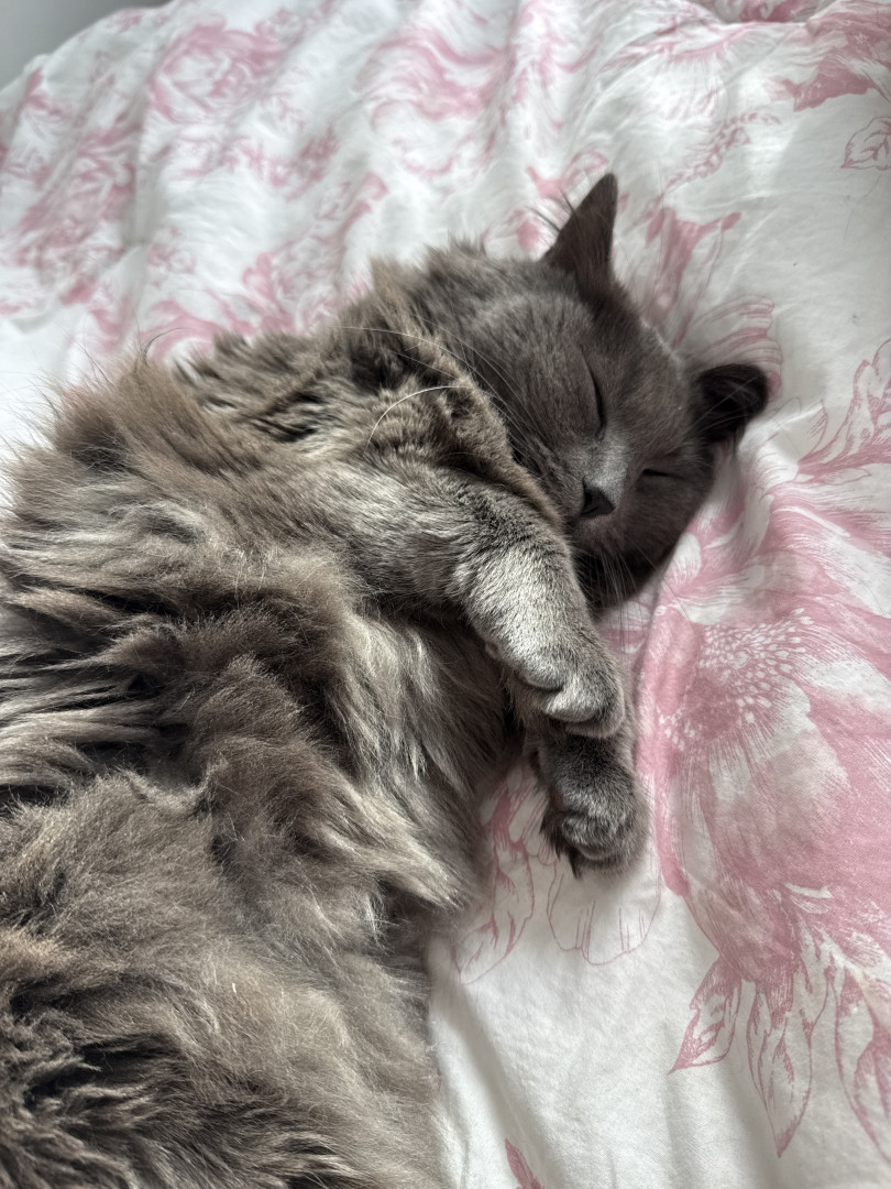Murphy is 5 years old and so cuddly. She’s not very interested in chasing lasers, but she loves a warm bed and her humans