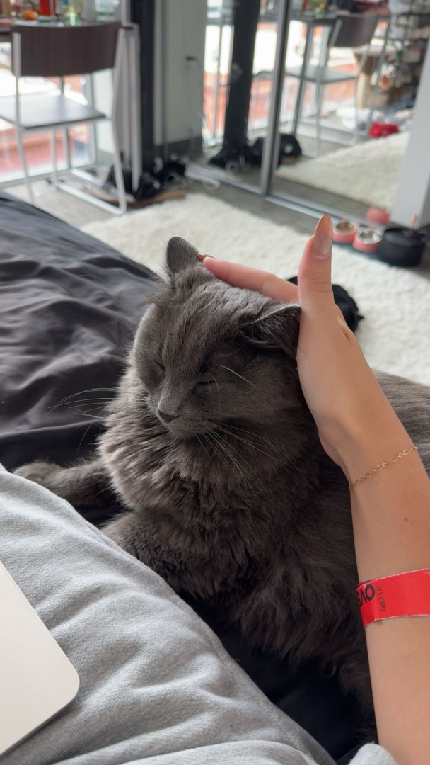 Murph has this wonderful quality where she pokes you in the eyes while you’re sleeping, and when you open them again she starts purring. It gets annoying at night but it’s so sweet she just wants to make sure you are alive!