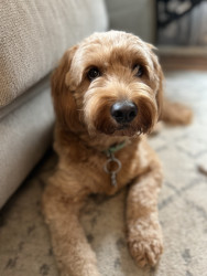 Murphy is our 3 year old mini golden doodle. He’s very playful, cuddly, and energetic. He loves to play in water, car rides and people.