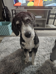 Friendliest dog I've ever met. He thinks every person or dog is friend-shaped and always wants a good belly scratch.