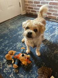 Molly is a 13 yr old Terrier who has the energy & attitude of a pup! She runs the household & bosses her “big” brother, Murphy, around!