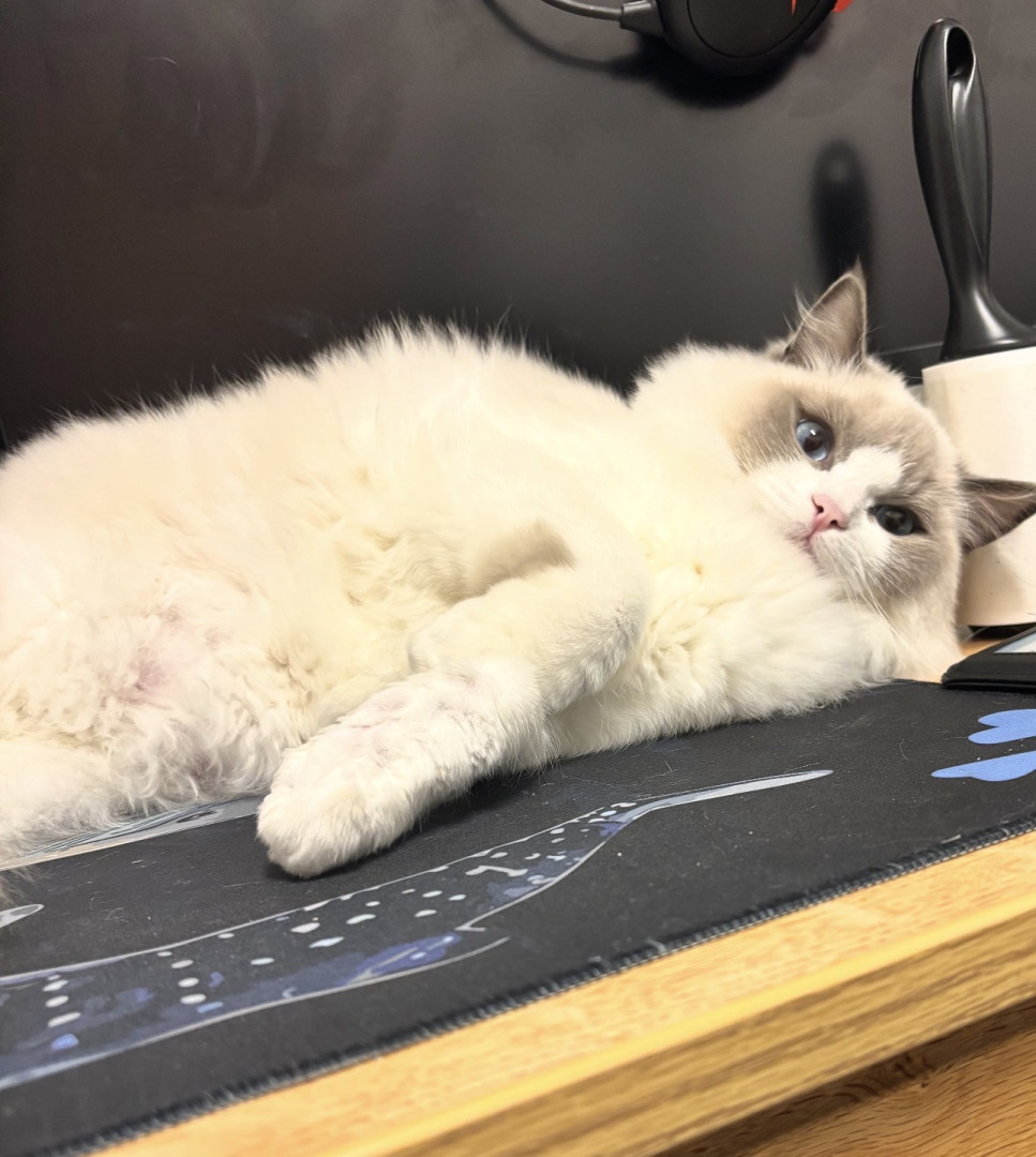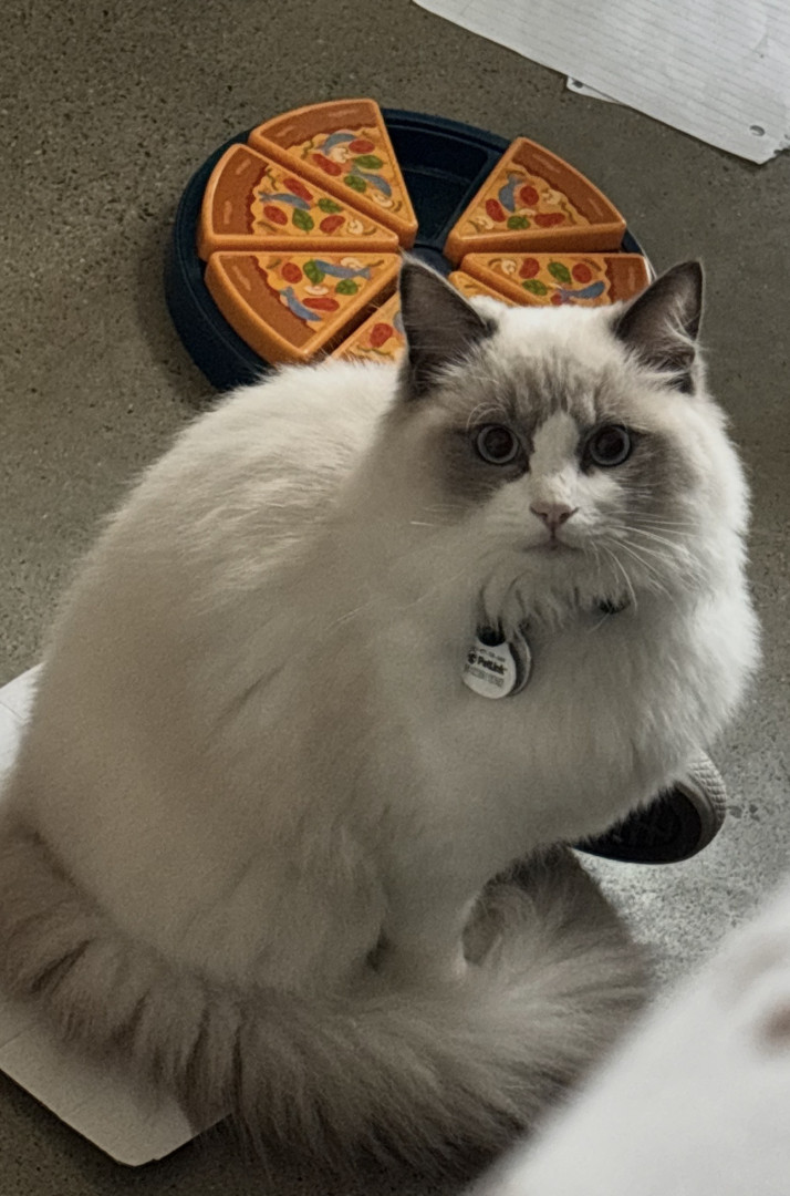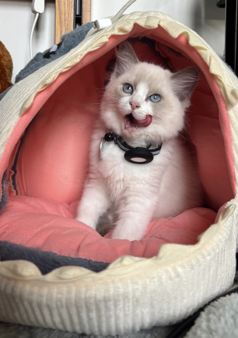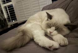 Mushu likes to sleep in his back , he purrs every time he sees me, he likes to follow me around and sometime tripping me in the process. he likes to snuggle into small spaces, he zooms @3 am and wants to play leaving me wide awake. . he also like to chase his own tail.