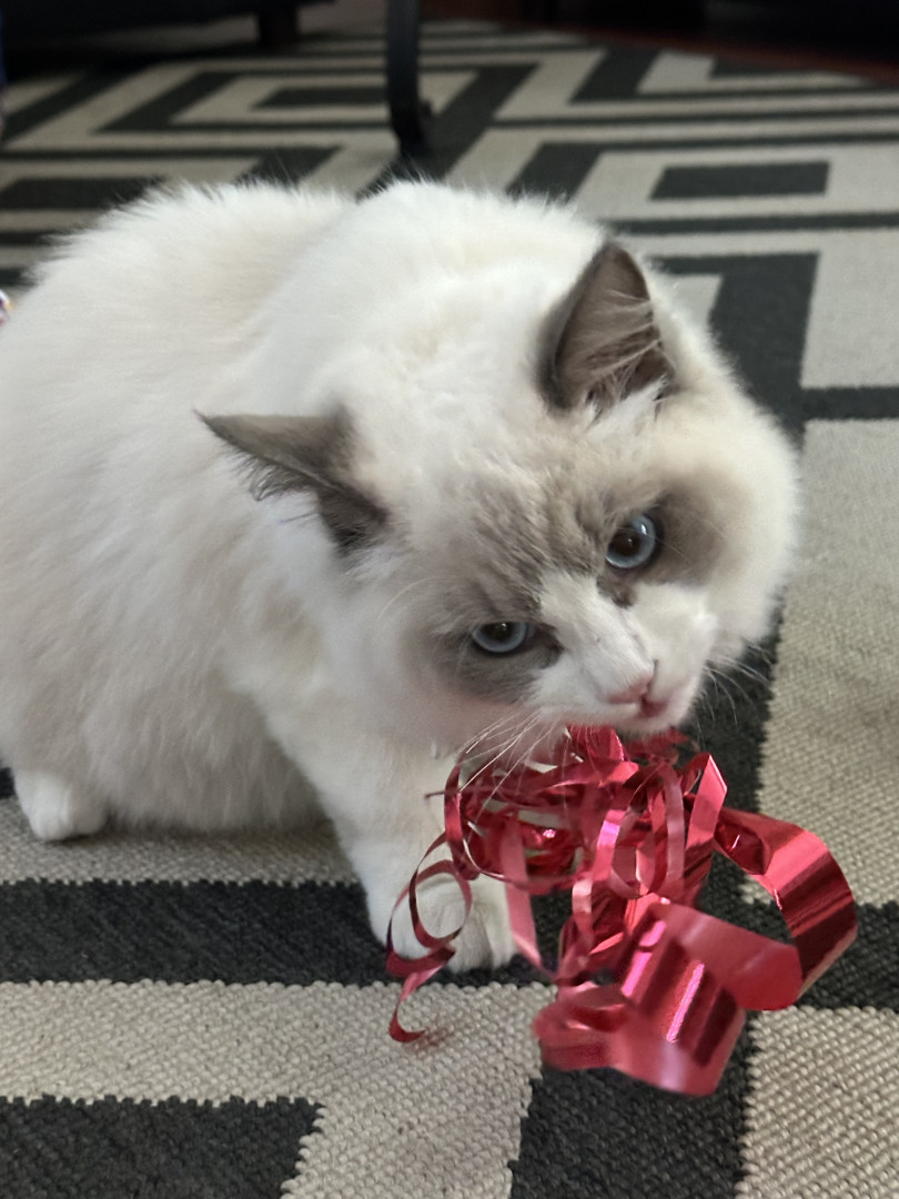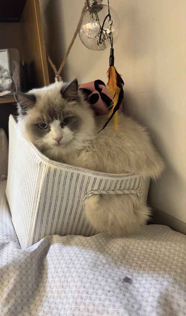 Learn MoreMushu likes to play the wand cat toy especially the orange color., he also likes to play and hide in boxes.