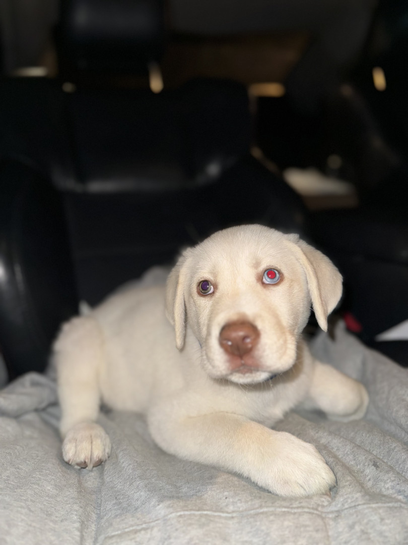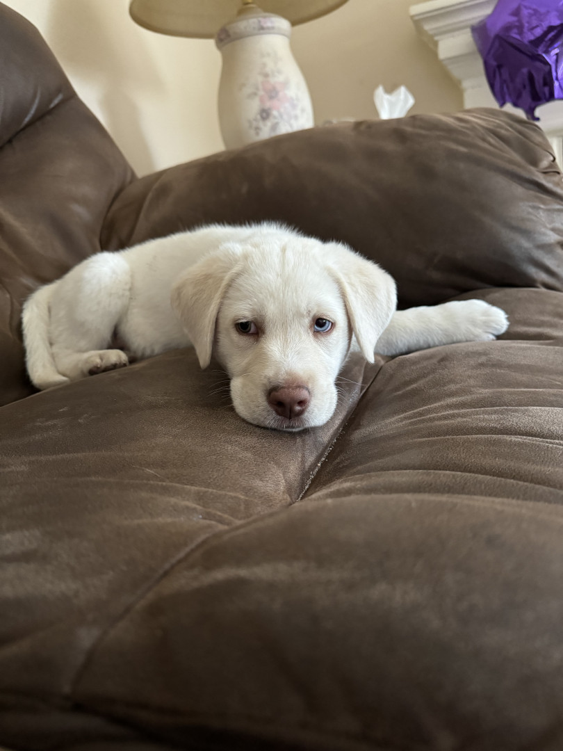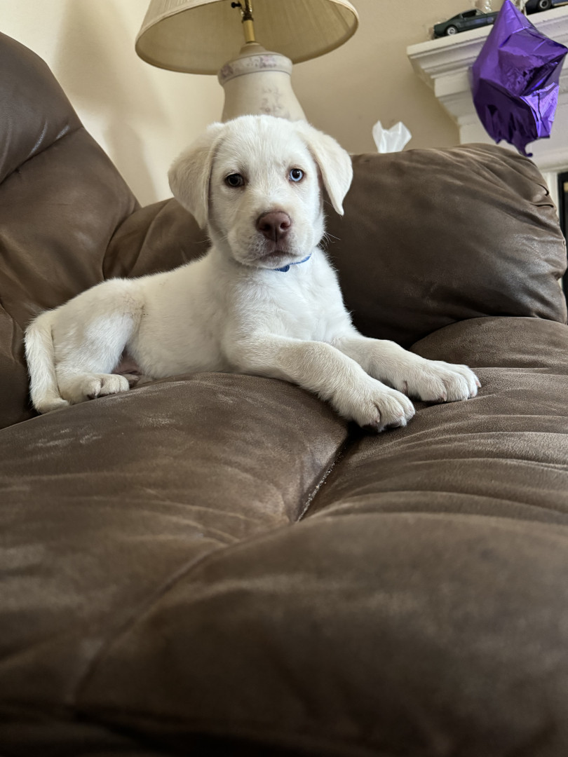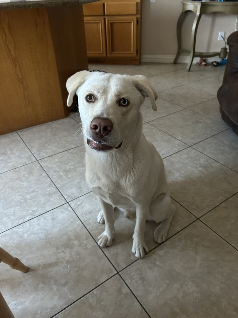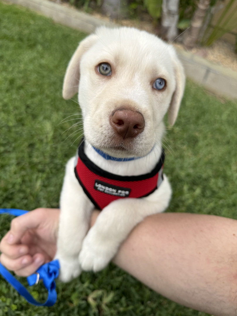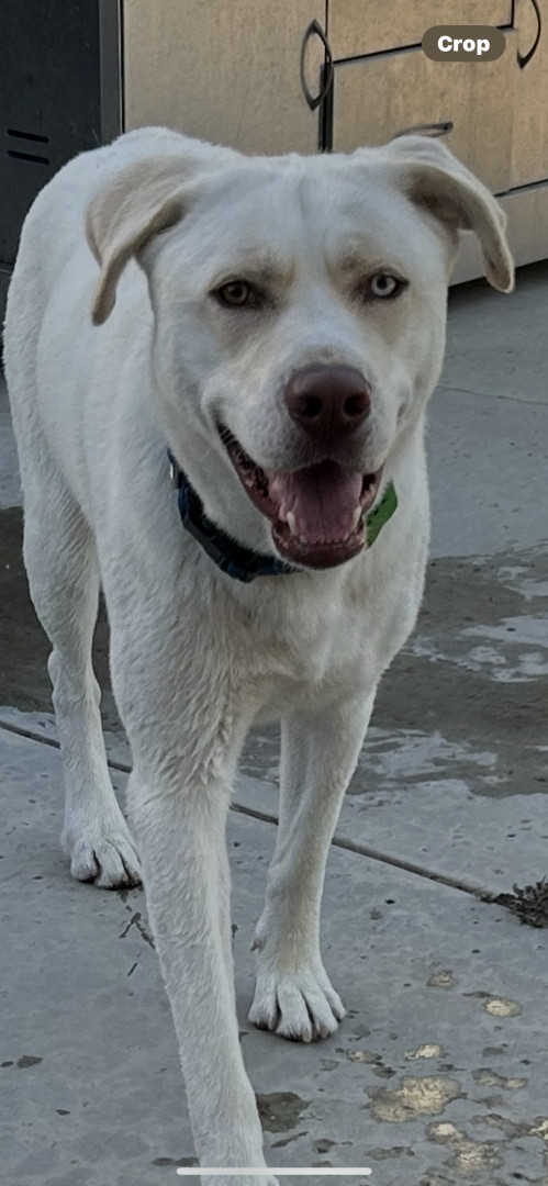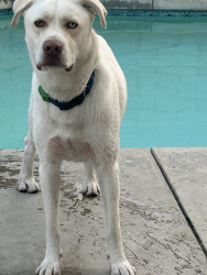 My baby Myers is a half husky half lab he is 1 1/2 yrs old Myers is full throttle 24 hrs a day and is very lovable