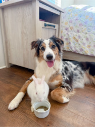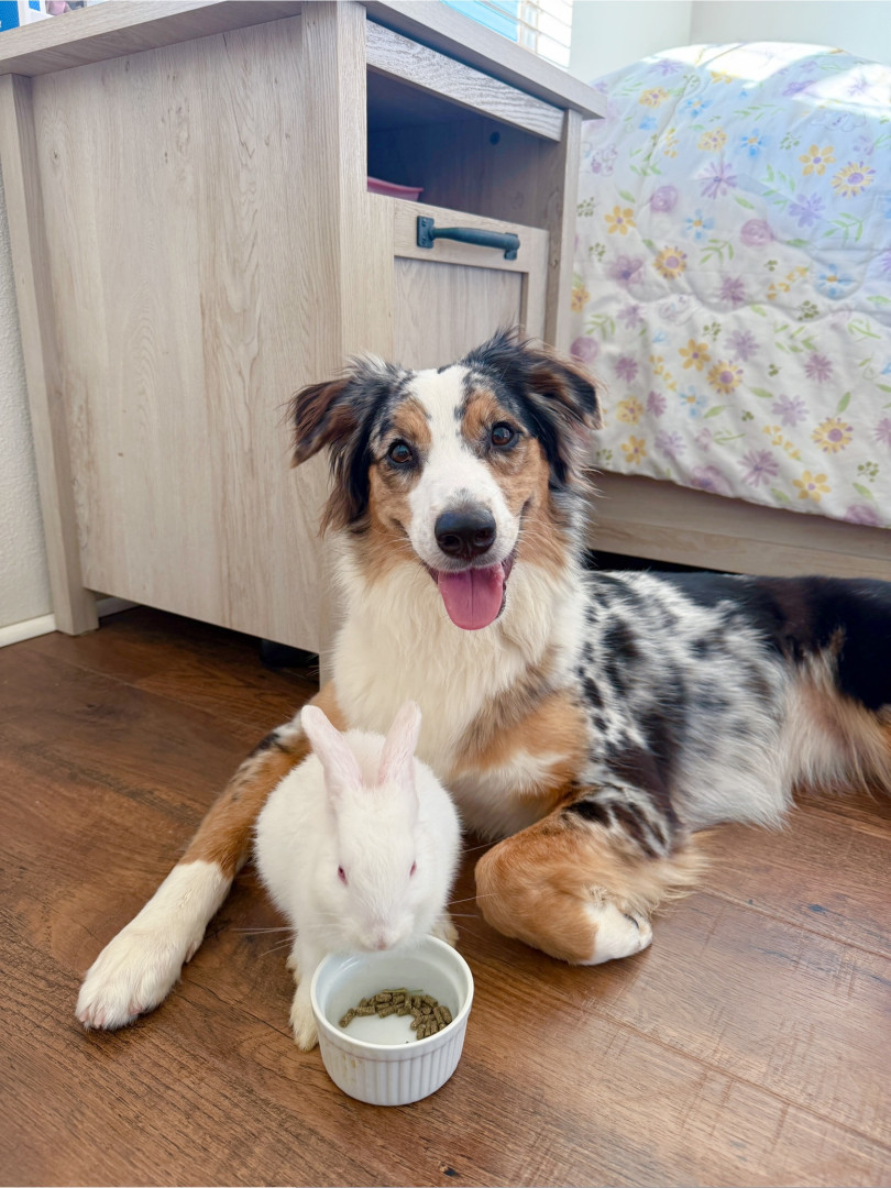 Myla is the sweetest girl who loves fetch, snuggles, kisses, movie nights, and her dog brother Mano and bunny brother Mimi!
