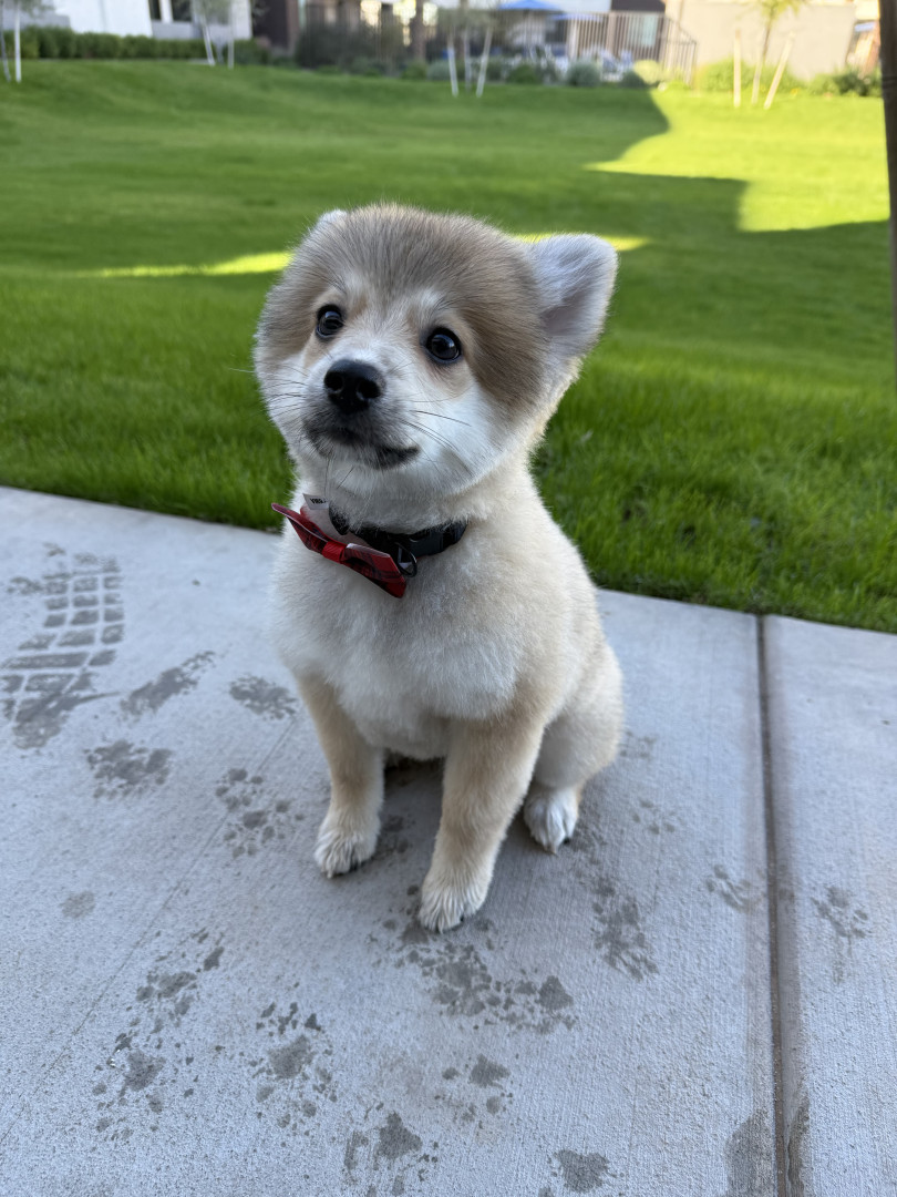 Mylo has the perfect balance of playful puppy energy and calm, soulful charm. He loves playing with big dogs, but also reminds people to slow down and simply observe the world. He’ll calmly watch me go about my day, almost like he’s studying life itself. He brings joy, comfort, and smiles everywhere he goes, pure love in fluffy form.