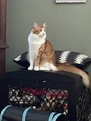 Very sweet and loves to cuddle on your lap.