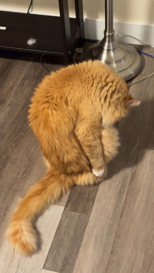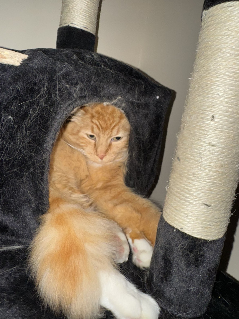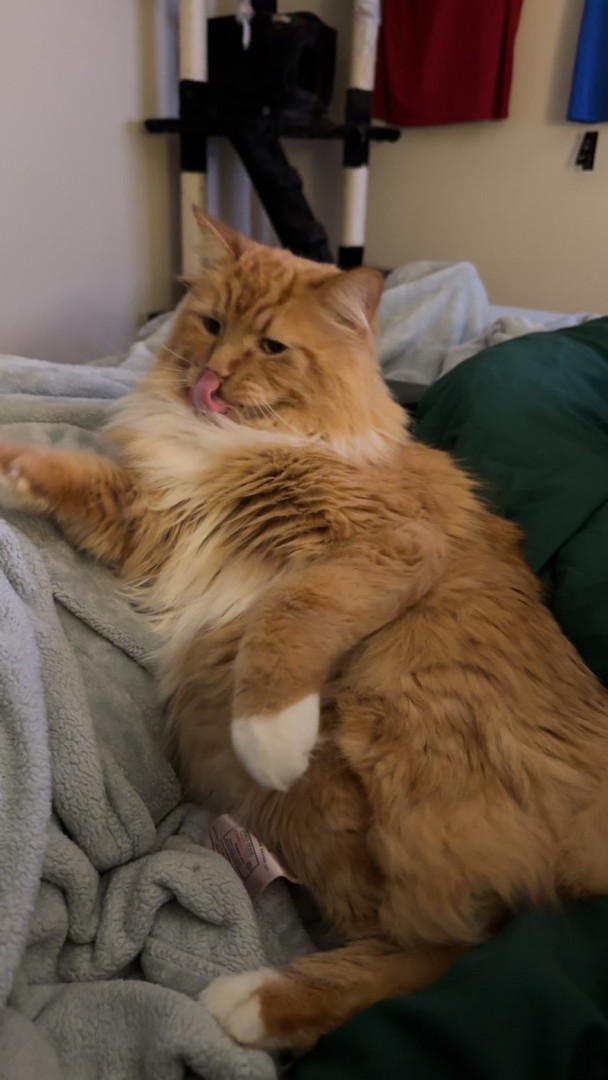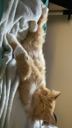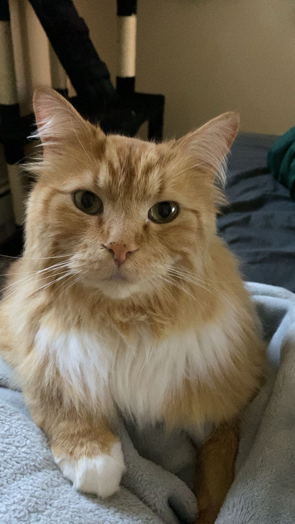 He is the sweetest goofiest cat. Soon as anyone comes over he wants to be picked up and held like a baby. He loves being higher than the ground. He will play with you if you find a toy he is in the mood for. And he wails for wet food when it comes out for supper it is so funny.