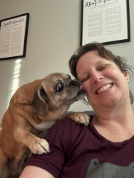 Nahla is my cuddle monster. Loves selfies, gives kisses and gives you her paw when she wants a treat. She protects and show a lot of love