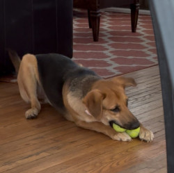 Learn MoreHer favorite toys are balls. She will always try to carry a tennis ball with one of her other toys! Her favorite treats are beef liver and a peanut butter filled bone.