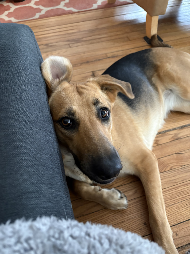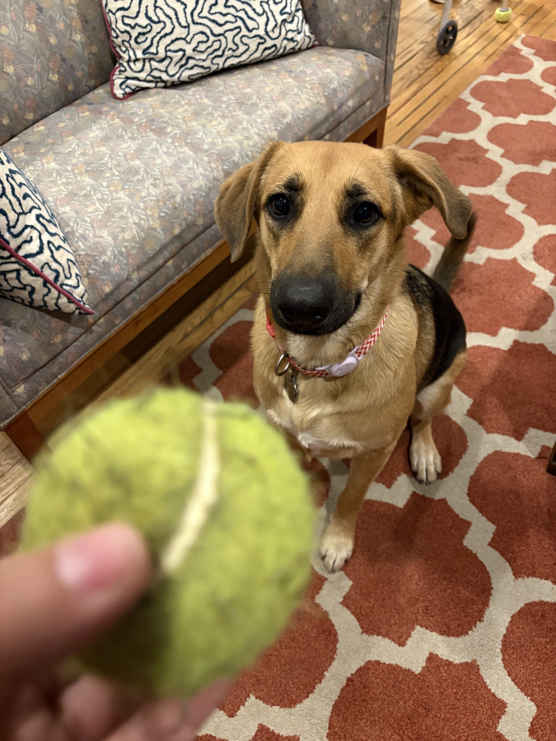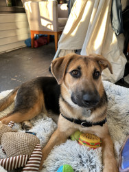 A beautiful 2 year old German Shepard Lab mix. She loves meeting other dogs and is super playful. She also loves to cuddle!