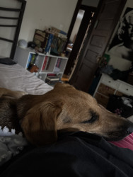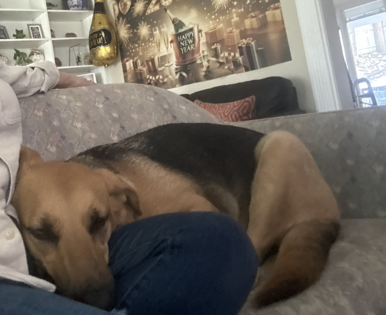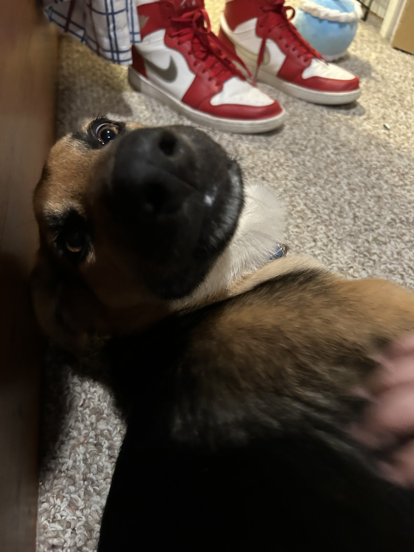 She is super smart and sweet. She goes up to people and moves their hand to her head to make them pet her. She’ll even shove her head into your arms just so she can be pet.