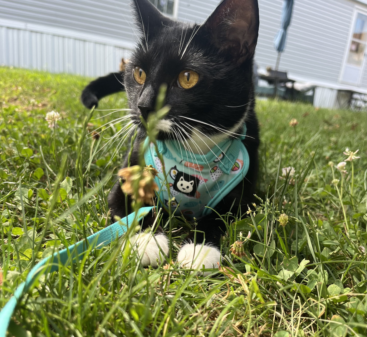 Nala is a very lovable and cute cat who absolutely loves going outside to nibble on grass and explore the fresh air. She also loves to play!