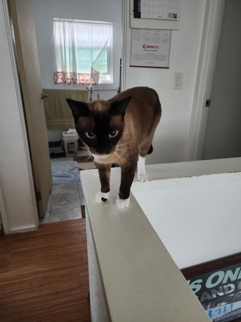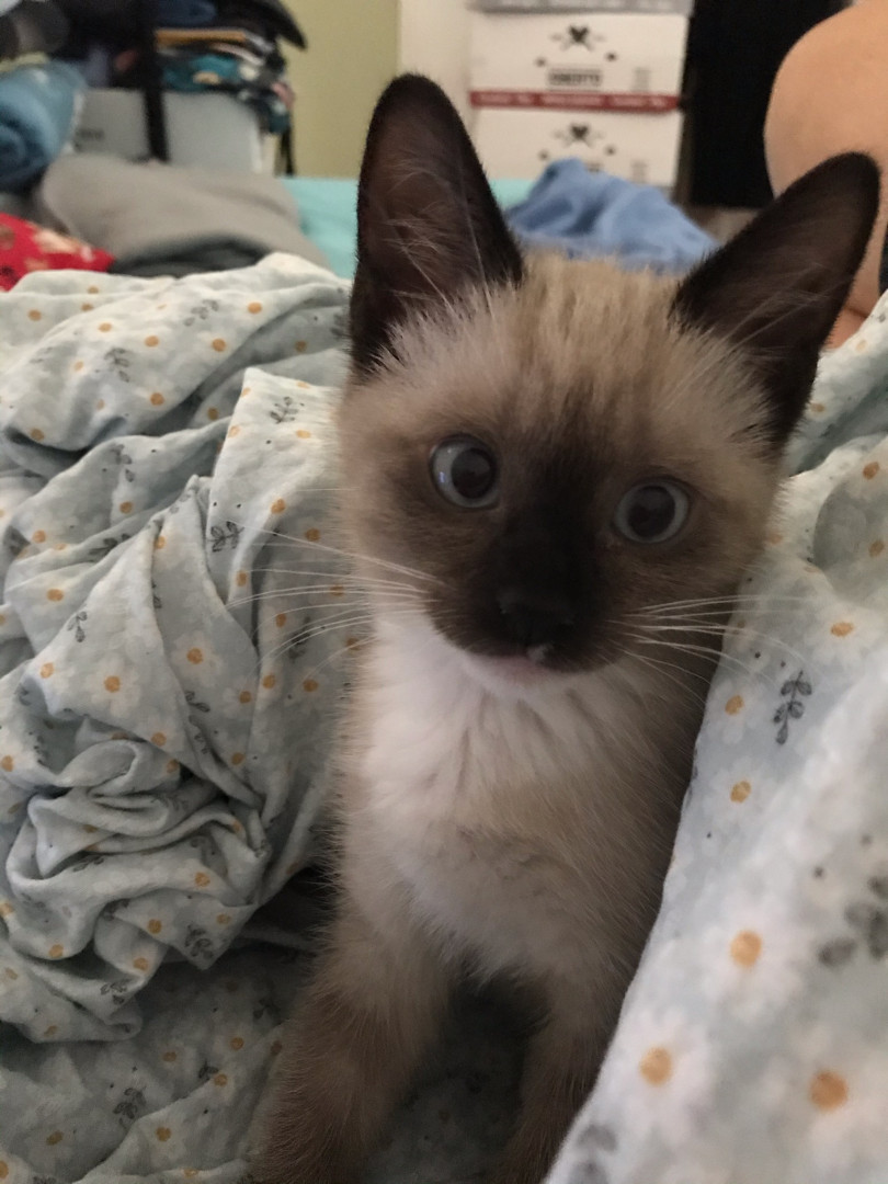 Cute and very vocal and loves to cuddle and sleep on her pink blanket and loves biscuits