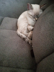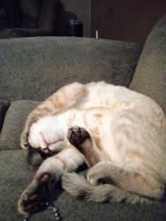 She is very unique because she will stand straight up on her back legs when she plays with her toys like a person walking . When she wants to go to sleep. She will lay in my arms like a baby and wants me to rub her belly until she falls asleep.
