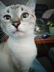 She is a cute funny kitten with a mind of her own. She has a very funny personality. And she will definitely make you laugh. And she is a very beautiful kitten hands down. 😊♥️