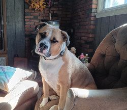 She loves to chew through and destroy toys. Go to treat is a smoke beef bone