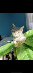Shy, very cute little girl. She will let you kiss her. Very observant. First to come on meal time. Eat a lot. Loves treats. Smells so good.