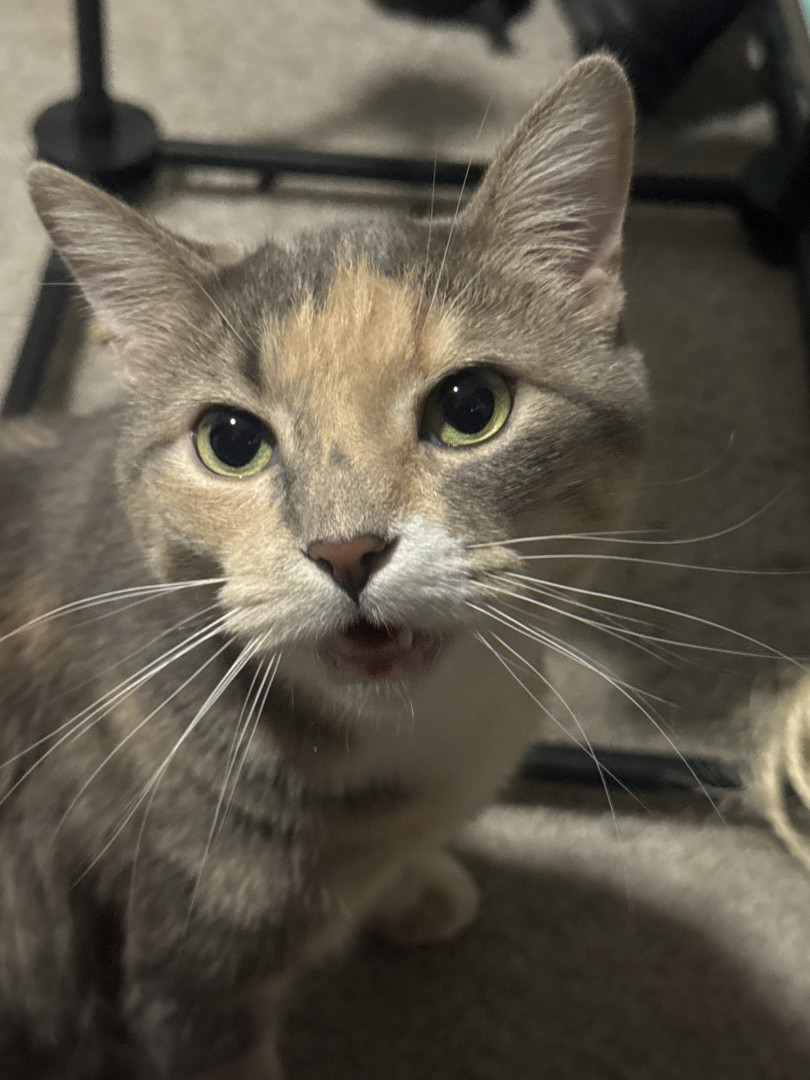 Naomi is an affectionate cat in a way that feels gentle, intentional, and deeply sincere. She has a calming presence, the kind that softens.