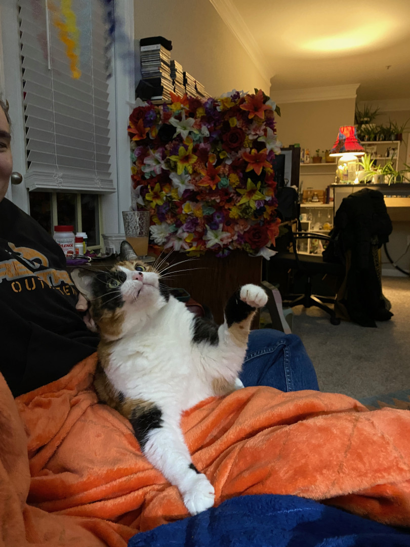 She is persistent and she actually cuddles you. She wants to hold you and be tucked in right next to you every night, especially if I have the heating blanket out.