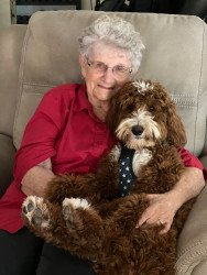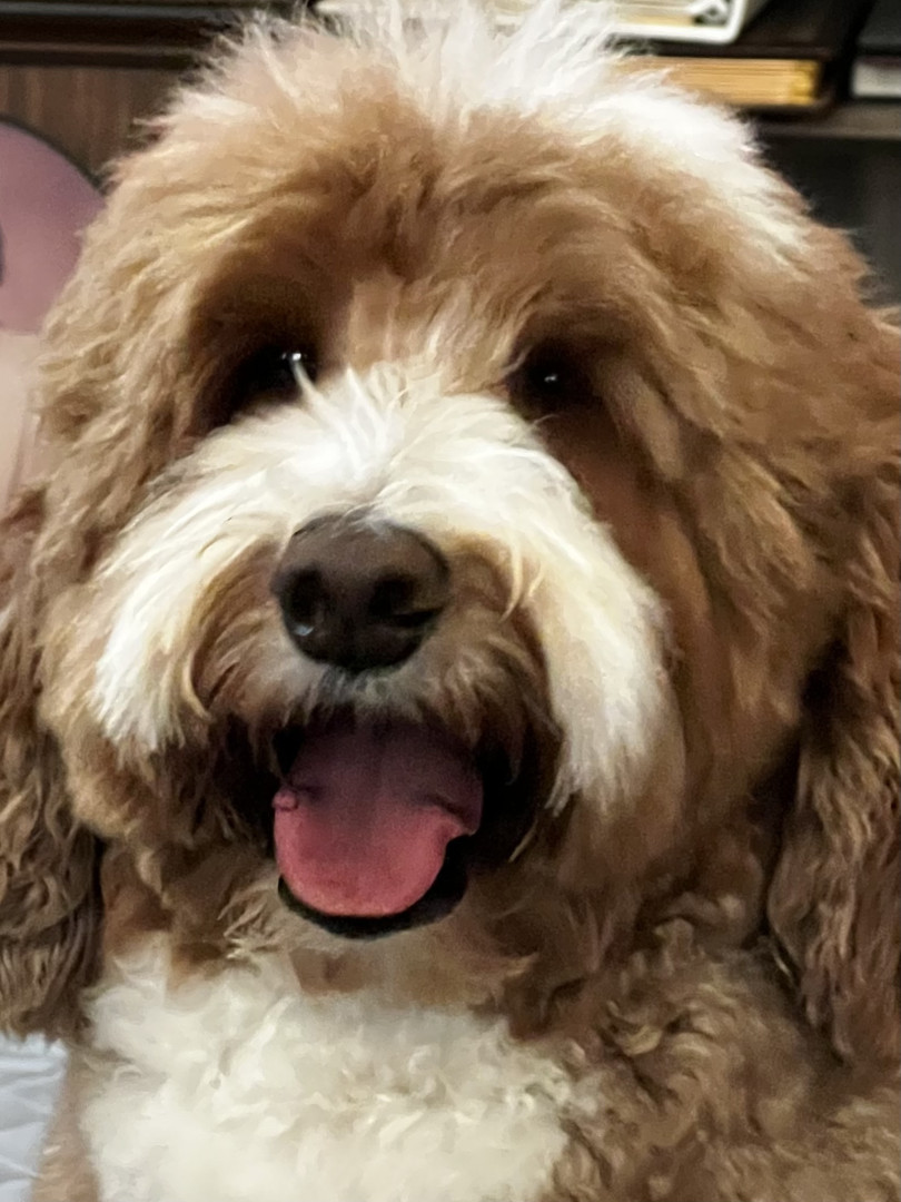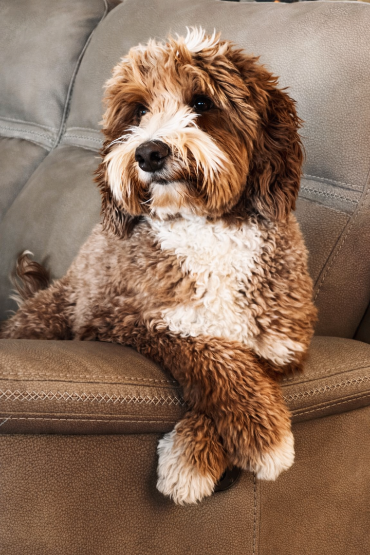 Nash is a 3 yr old multi-generational Australian Labradoodle with tuxedo markings. He is emotionally intuitive and endlessly whimsical.