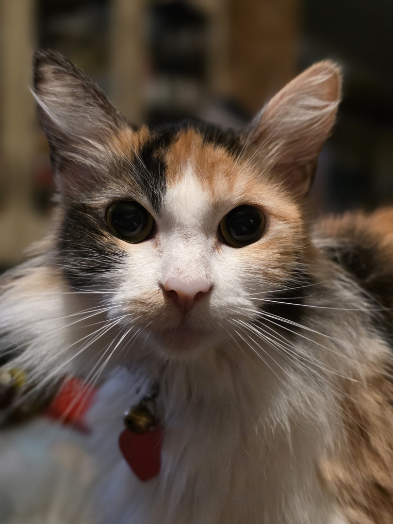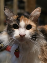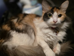 Navi is a beautiful long hair Calico that I adopted from a farm. She was fairly feral when I got her, but has since opened up.