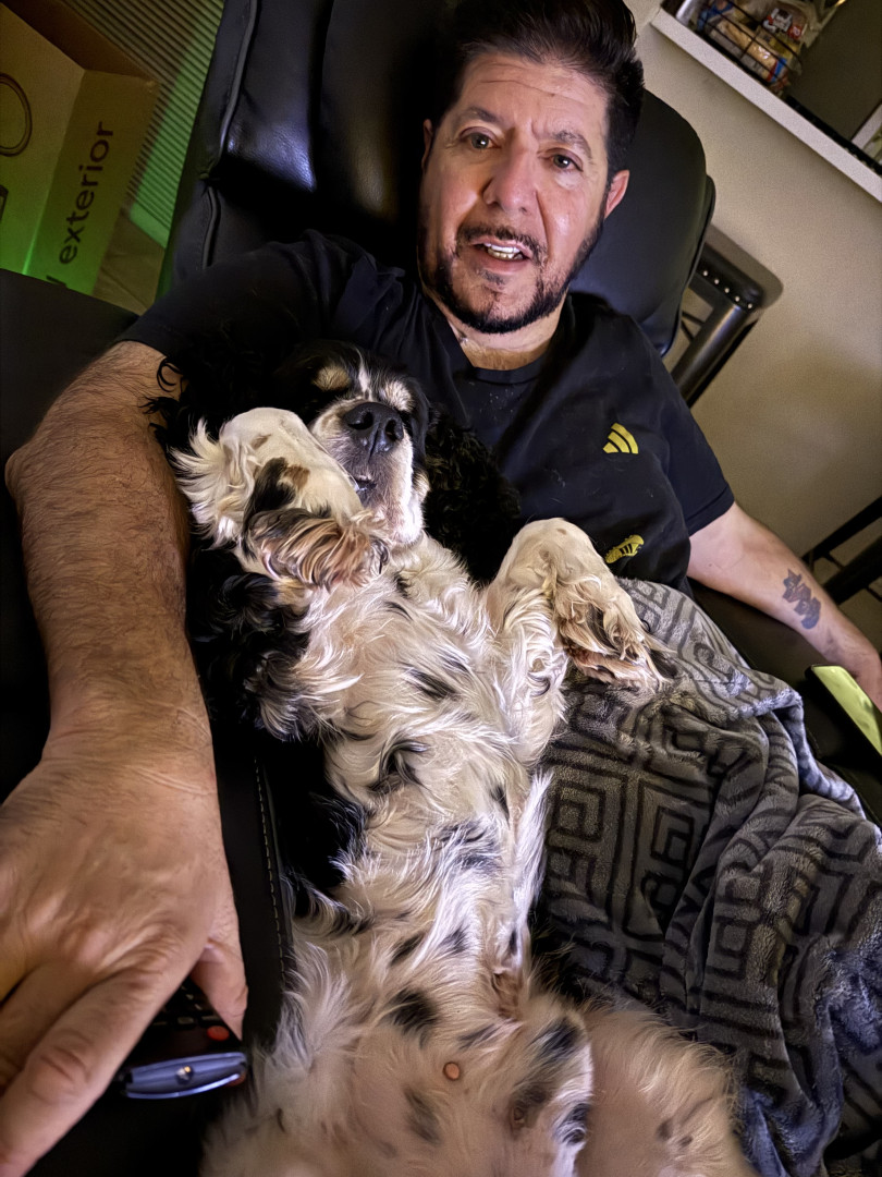 Newton’s a love. Cuddle king, loyal smart kind and very brave. He will shake a little at the vet but hold all his grrrs in to not scare u