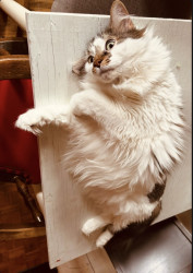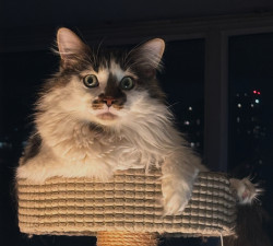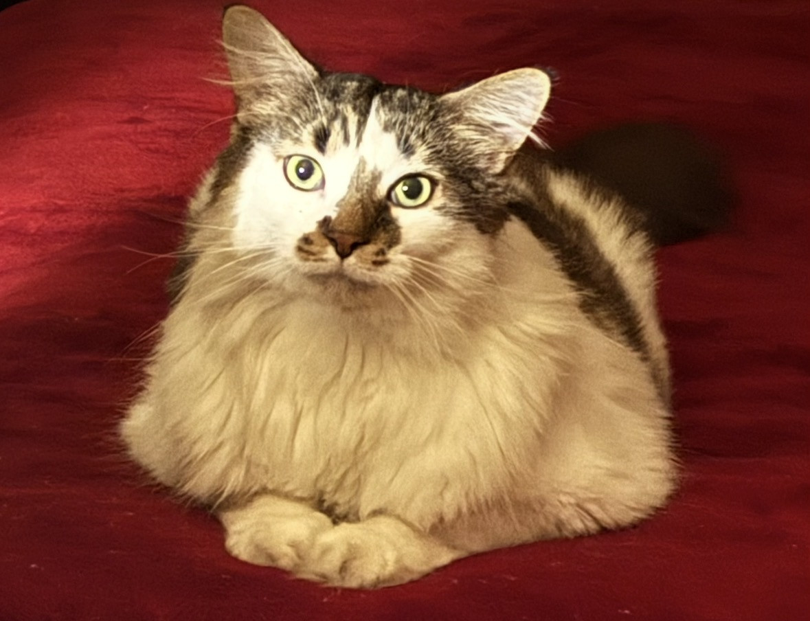 Nicholas the Furst should be America's Favorite because he is a survivor who has overcome endless mental and physical challenges. This gentle giant will defend his fur and fearlessly fight anyone who tries to take his hard-earned freedom from him. However, he is also afraid of garbage bags and vacuum cleaners, and shows his gentle side by hiding in the closet. Nicholas the Furst is a living proof that, no matter what, you can blossom with the right people around you.
