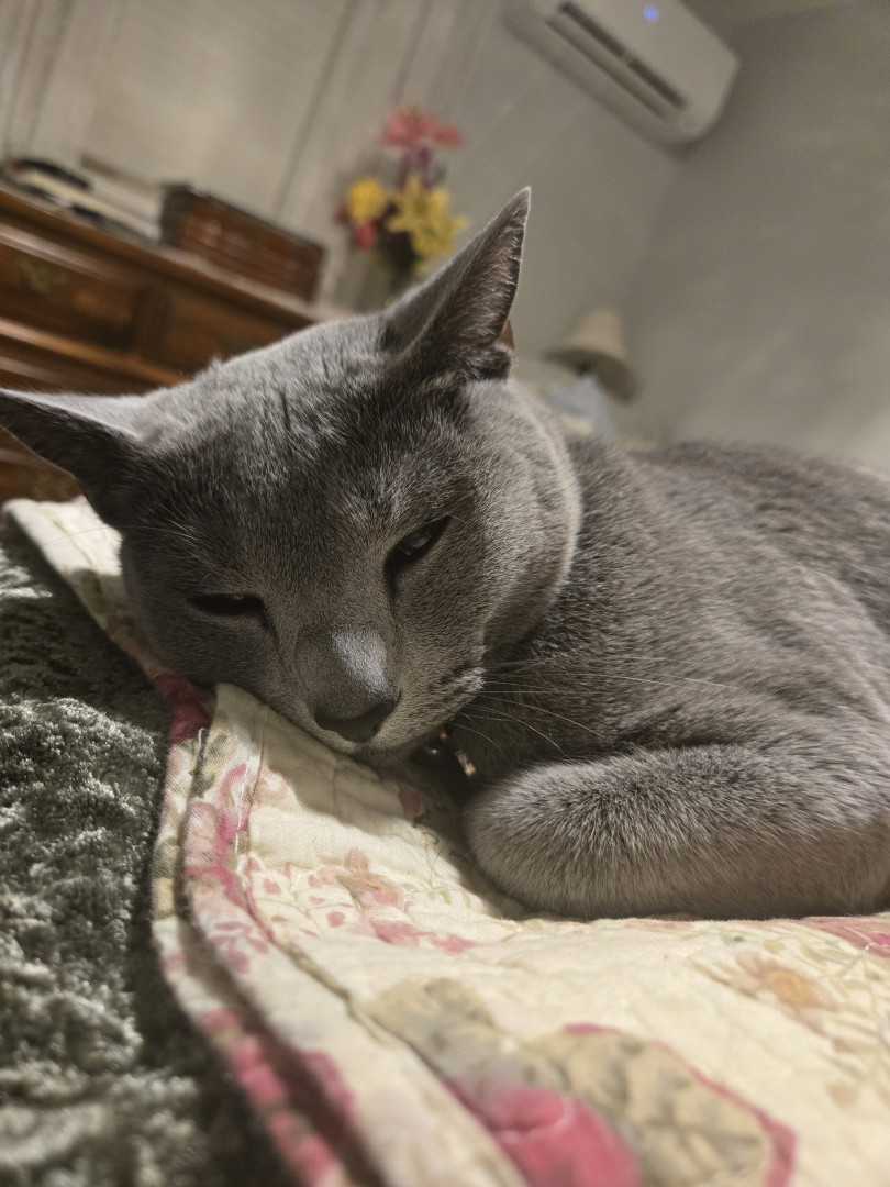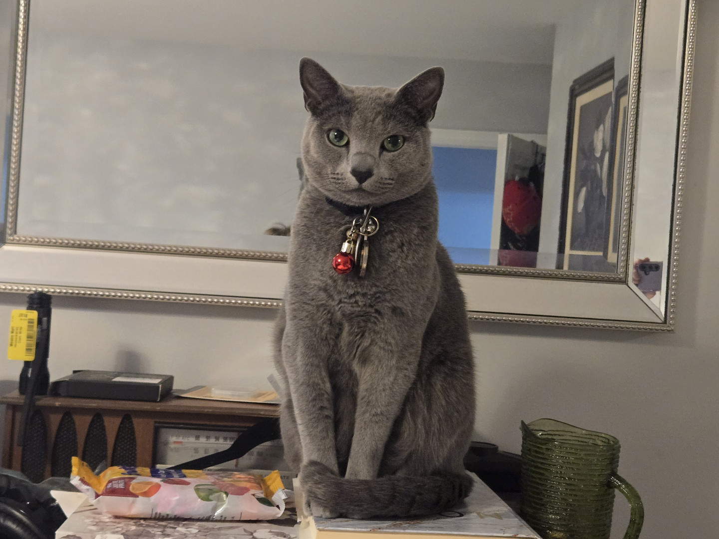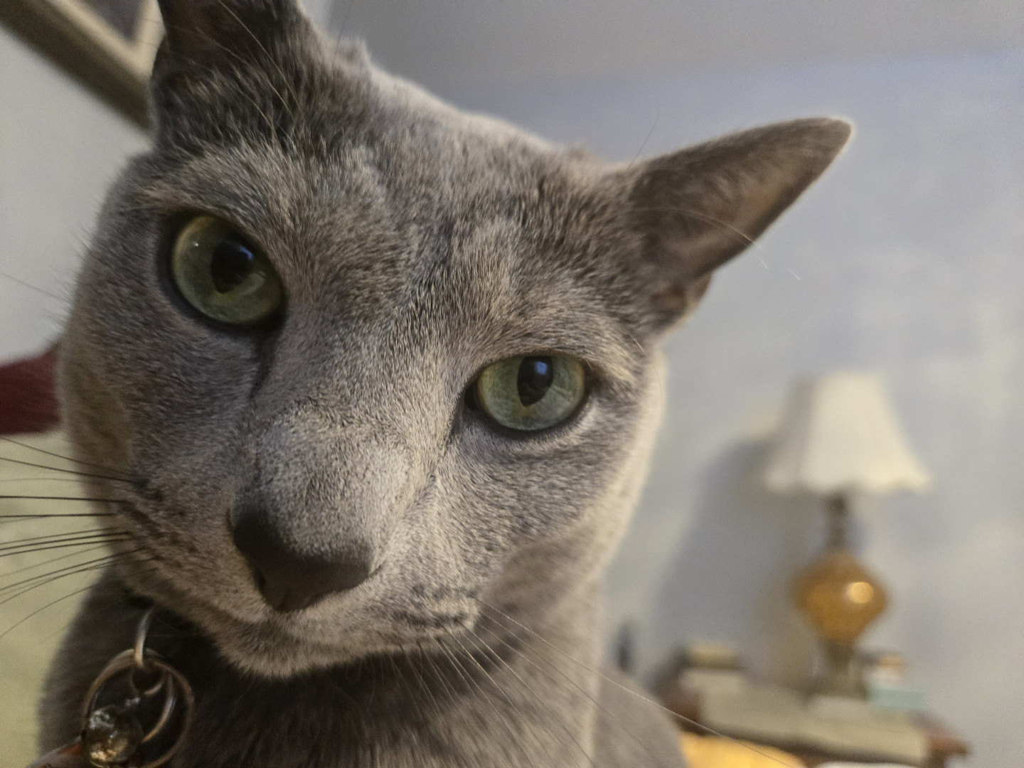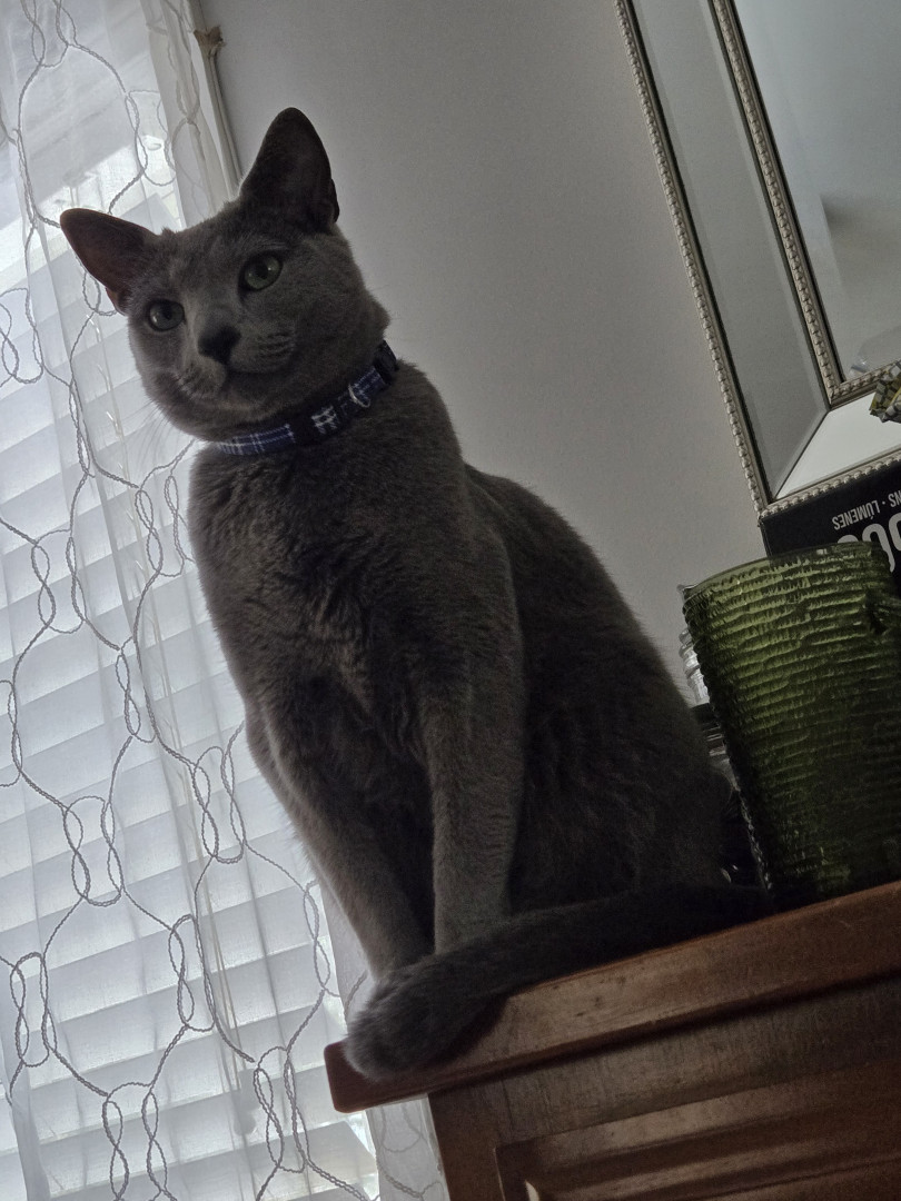 Nicholi is a Russian Blue . I travelled from Nova Scotia to Georgia to purchase him as a Kitten . He will be 4 years old on Feb 7.2026.