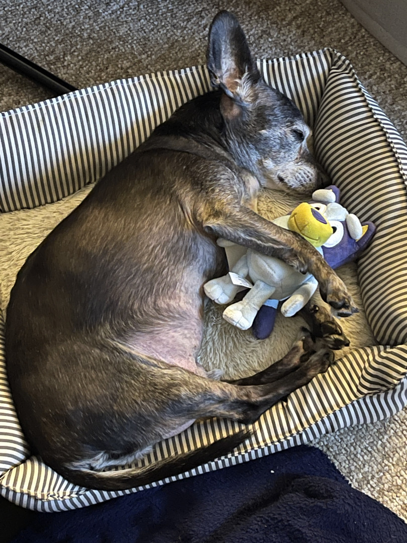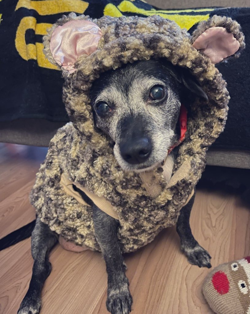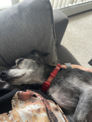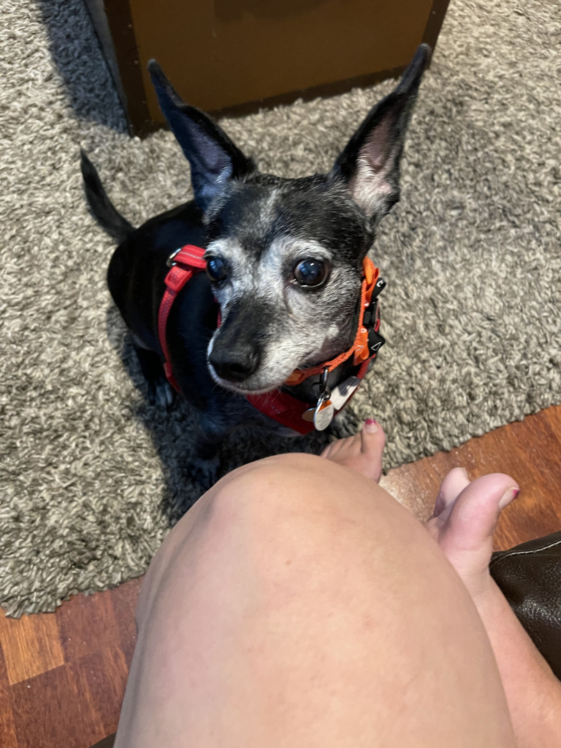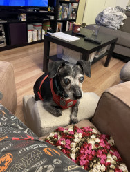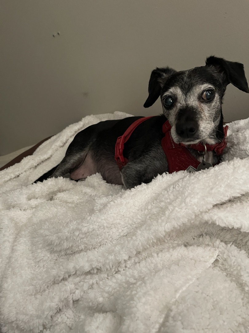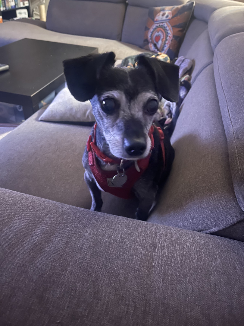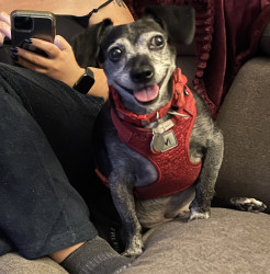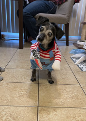 Nick is a 17 y/o Chihuahua Black Lab , who in a small body has the most energy and love to give to anyone. Check his pics such a cutie ! 🥰