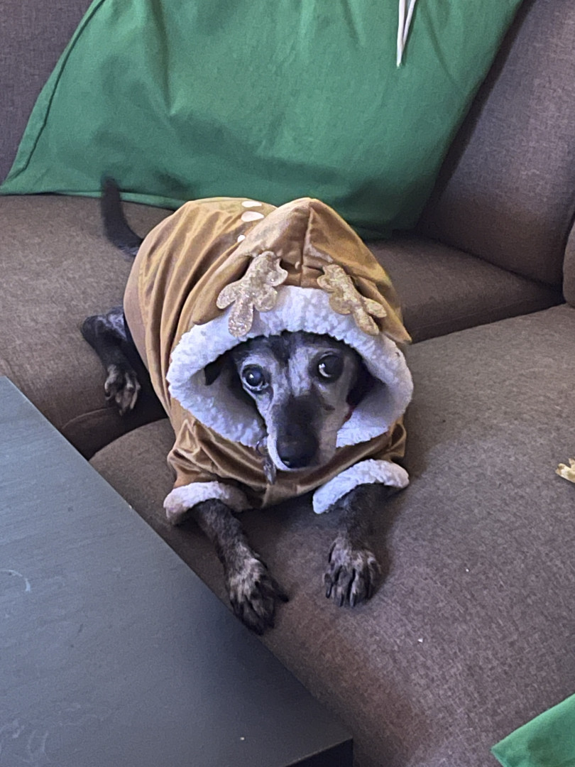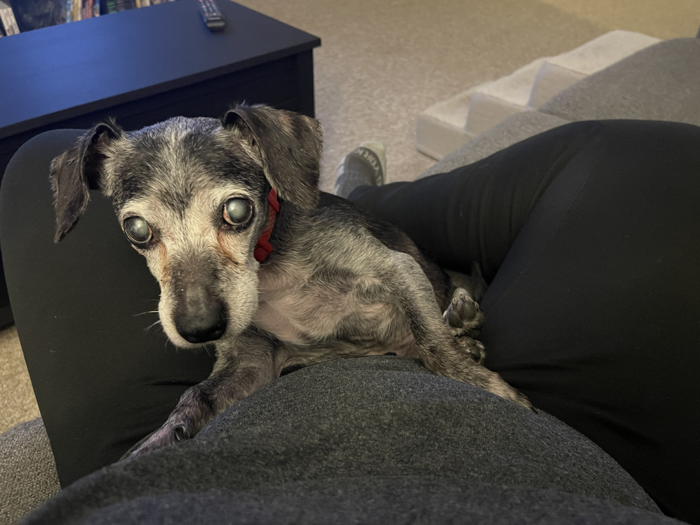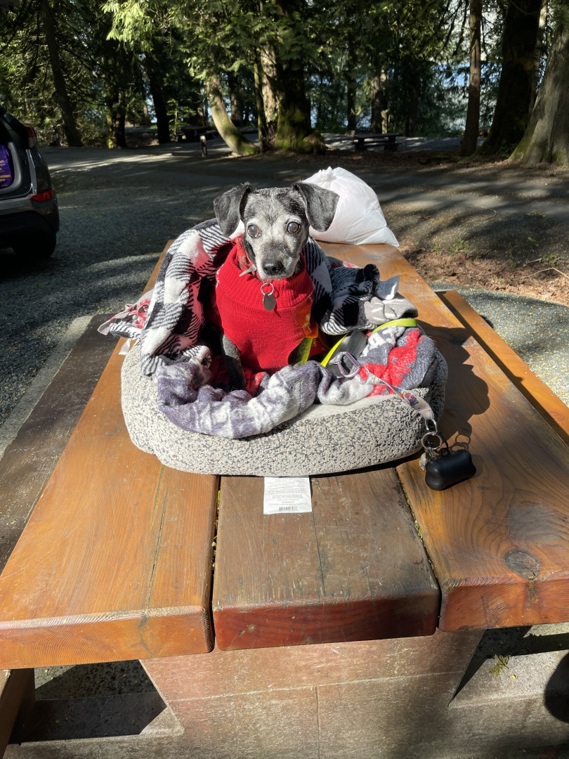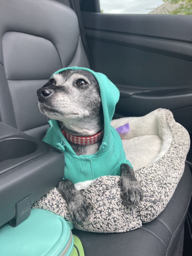 Nick is a 17 y/o Chihuahua Black Lab , who in a small body has the most energy and love to give to anyone. Check his pics such a cutie ! 🥰