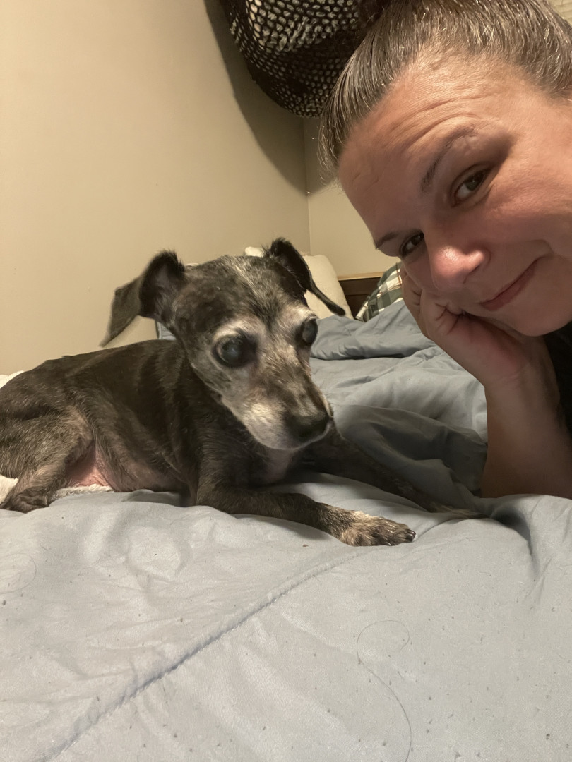 Nick was adopted at a year old from Vegas from a puppy mill. We took him home and immediately he was part of the family. When I got him back in 2021 when my ex was moving up north I was ecstatic to have my boy back. He was over 40lbs and physically miserable though. I spent years retraining, resocializing and exercising. When he got his diabetes diagnosis in 2023 I didn’t give up on him and I put him first above everything. He deserves to win because he is so resilient and has come so far !!. 🥹