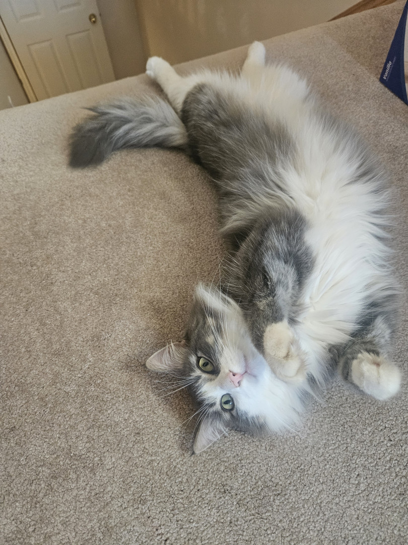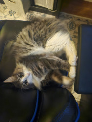 Nico is the most adorable and photogenic boy but also the craziest, goofiest kitty I've ever had! He's also addicted to nibbling my chair!😅